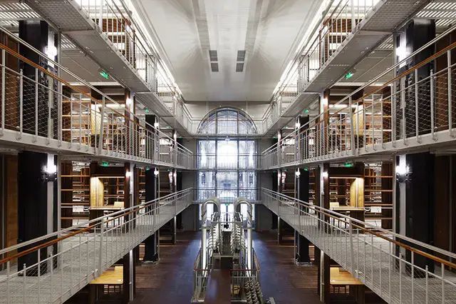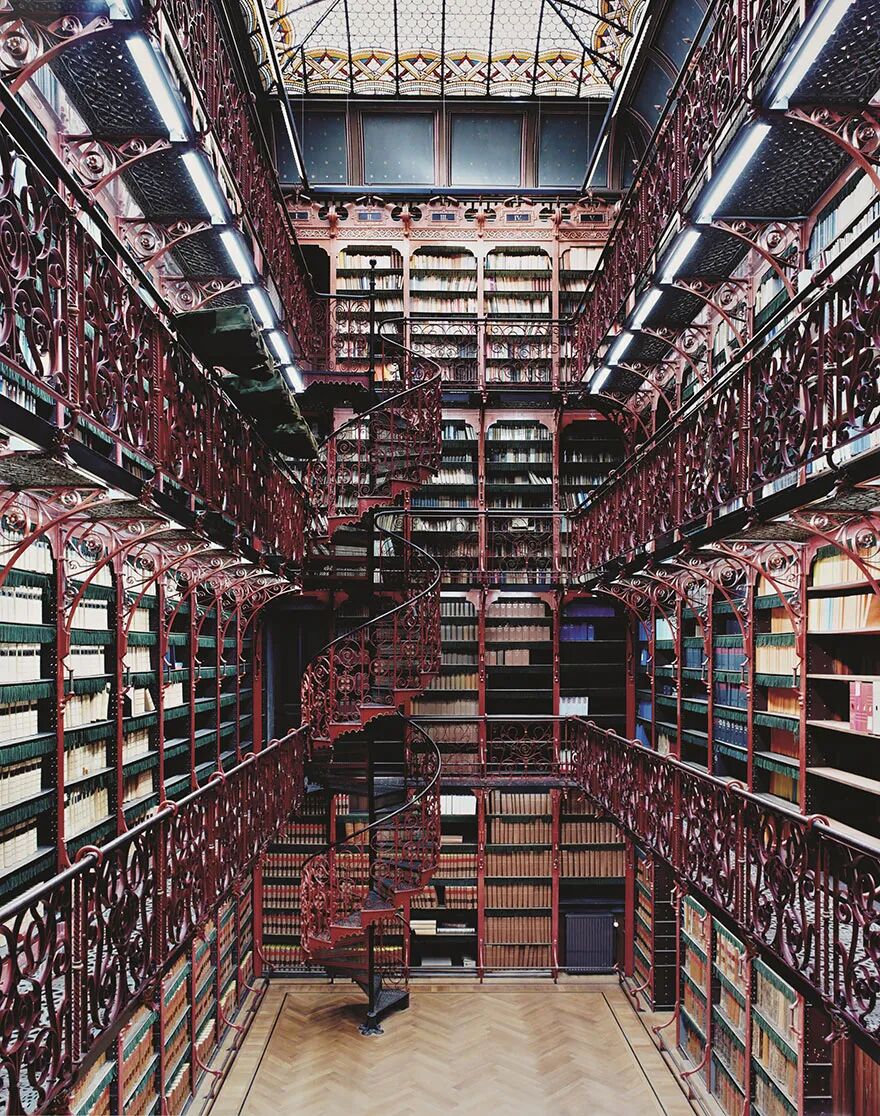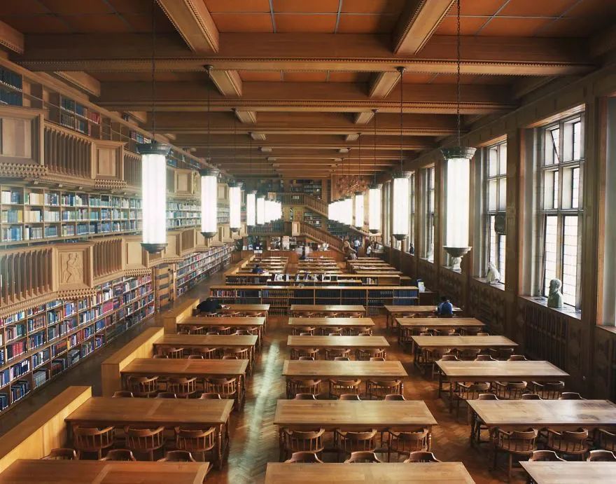 海牙老图书馆坐落于荷兰海牙的议会宫里。铁铸的回旋楼梯和栏杆上涂满了东方年味的大红色,搭配挑高的西式中庭设计,即使不看书,坐在里面也是一种享受。