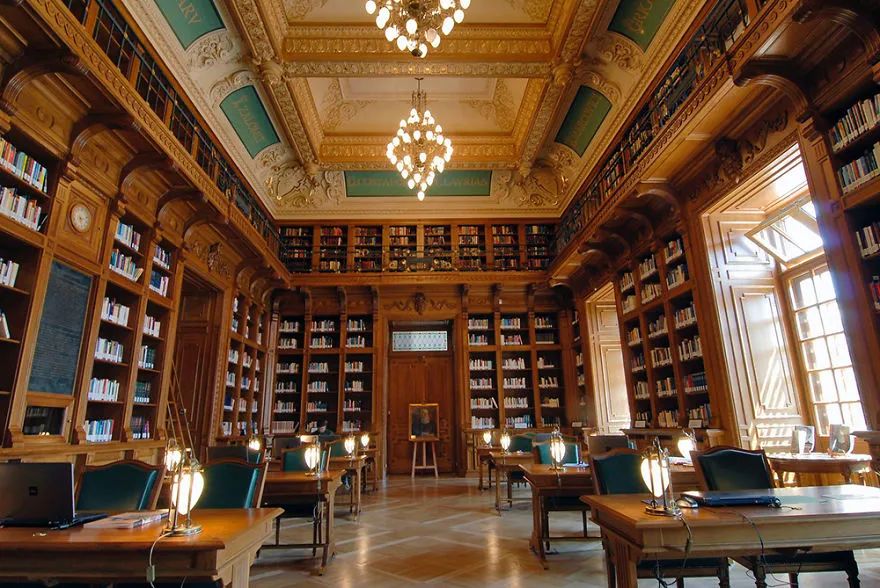 建于1643年的马萨林图书馆(Bibliothèque Mazarine)是法国最古老的图书馆,它曾经是红衣主教马萨林(Jules Mazarin)的私人图书馆,据说1648年的时候藏书量就已达到四万册,也是当时欧洲藏书最多的图书馆。今天的马萨林图书馆当之无愧是一个学习和研究的遗产图书馆,拥有600000部作品,其中近200000部都是非常难得见到的古书。