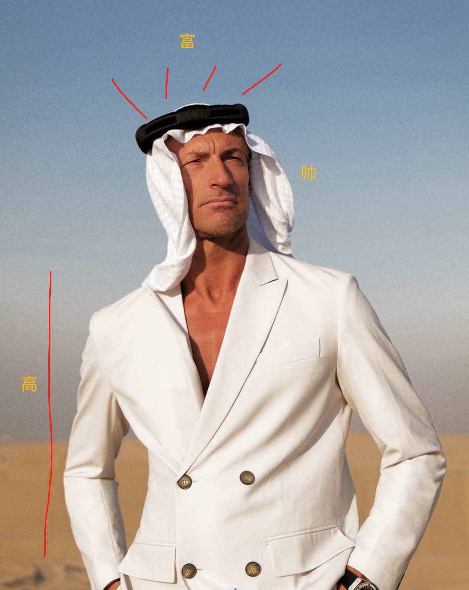 有时候还用头巾搭配西服,把高、富、帅三大元素都集齐~