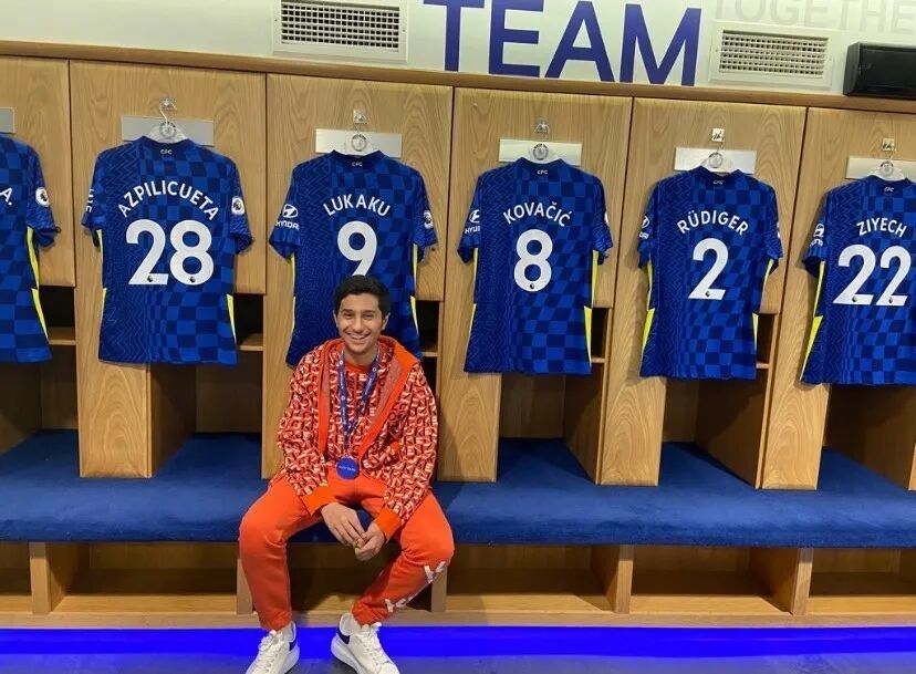 切尔西更衣室的也为他打开~Kenzo外套很是鲜艳。
