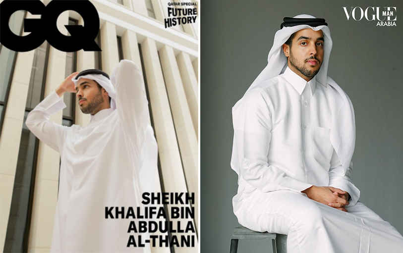 这一群高颜值的多金王子,时尚圈自然也不会放过他们。这位Al Thani家族的另一个王子哈利法·本·阿卜杜拉,还穿过白袍登上GQ、VOGUE男士等时尚杂志。