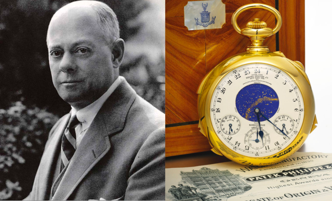 当年百达翡丽花了八年时间定制这枚超级复杂时计,整整搭载了24项复杂功能,背后的星空图是小格雷夫斯第五大道834号大宅上空的星空,被认为是“没有电脑辅助制作的最复杂的机械表”。
