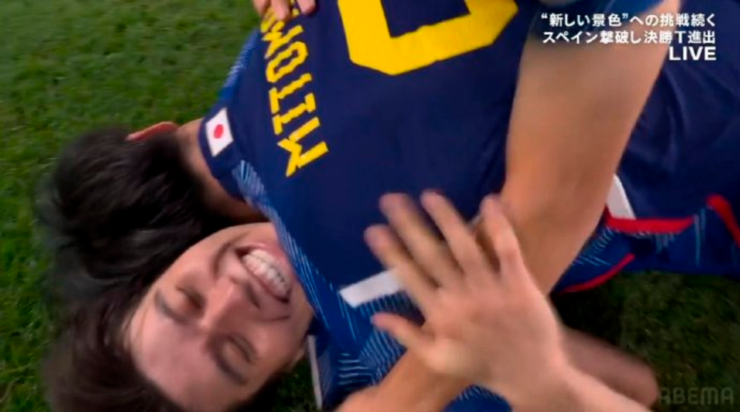 下半场日本队极限翻盘,3分钟内堂安律和田中碧连进2球。
