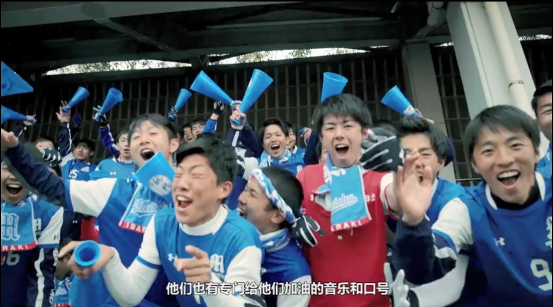 看台上学生们唱着自己学校队伍的应援歌曲,自发的组成演奏团,写口号、练舞蹈。