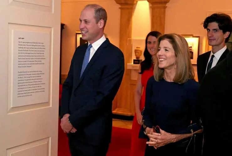 卡罗琳做了威廉的向导,带他参观了肯尼迪图书馆。在参观时,卡罗琳停下来指着一张女王伊丽莎白二世的签名照片,这是1961年肯尼迪总统和妻子杰基在访问白金汉宫时,王室送给他们的。卡罗琳说,“这是你祖母的。”威廉回答说:“哦,是的,1961年。”