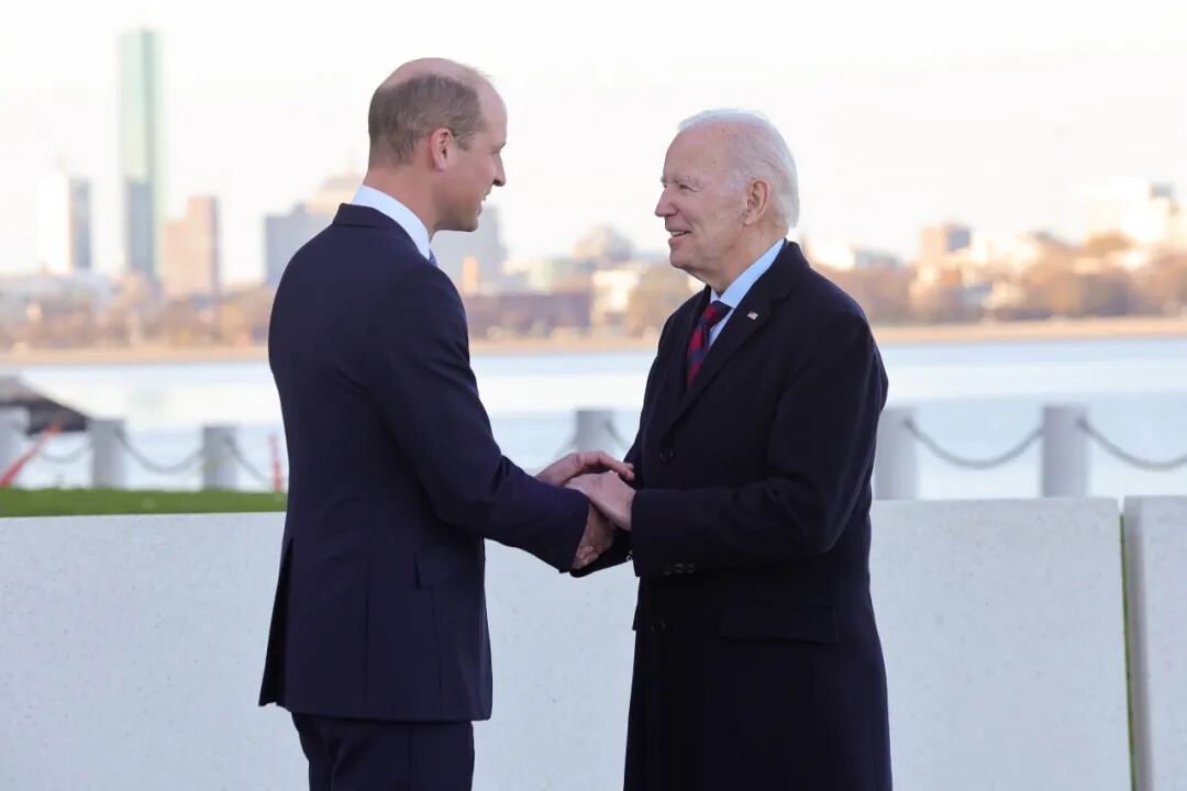 在和肯尼迪家族见完之后,威廉还无缝连接,在图书馆外与美国总统拜登会晤。当天拜登“刚好”在波士顿有活动。