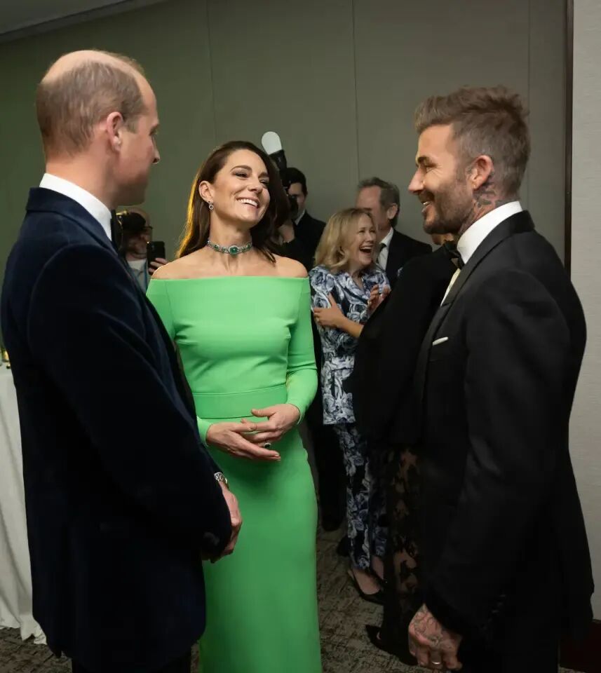 威廉的好朋友,足球万人迷大卫·贝克汉姆到场颁奖,还和威廉凯特热聊。