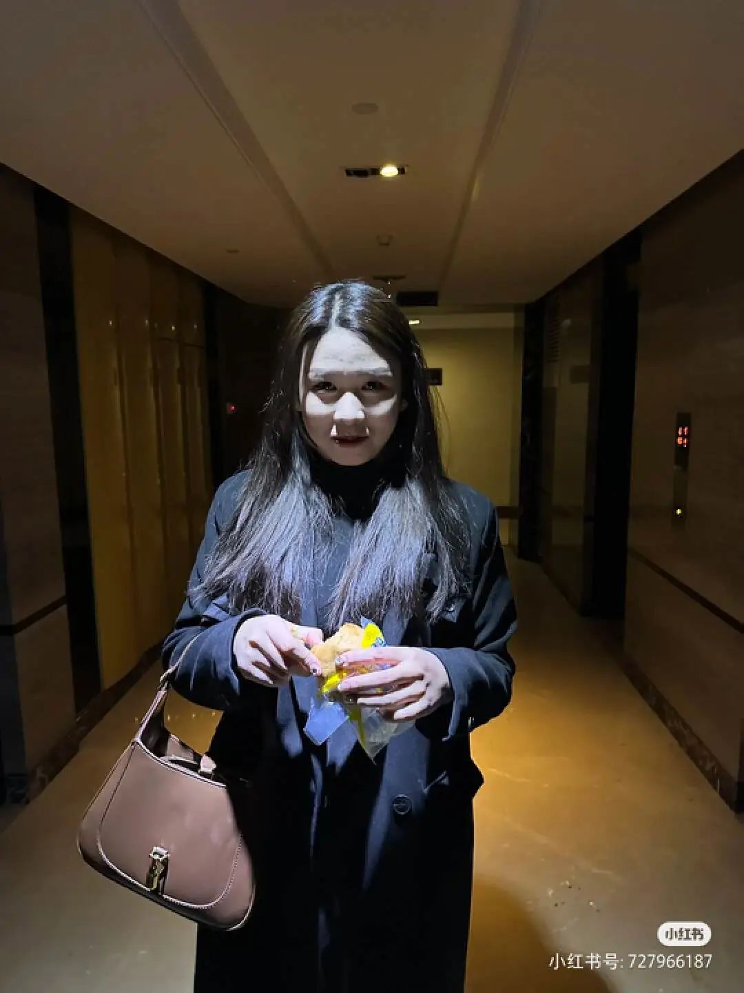 连睫毛都能投出阴影……当然,在顶光之下,小肚子、胯部的坎坷曲线,甚至内裤印子,也都无处遁形。而UR试衣间用的就是顶光,这才导致UR试衣间拍照效果差异巨大。有不少网友都吐槽过这一点,表示“UR什么时候改善一下这个死亡顶光,业绩起码涨30%”。除了试衣间外,有些走廊里也会设计顶光,效果嘛……不来这里拍恐怖片真是太可惜了。