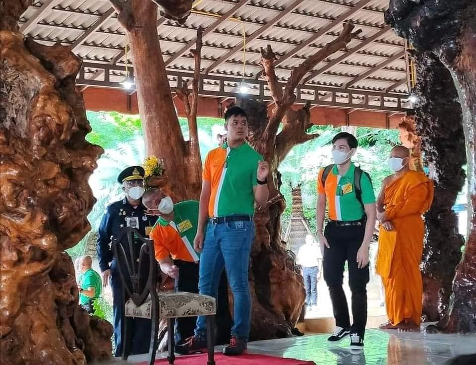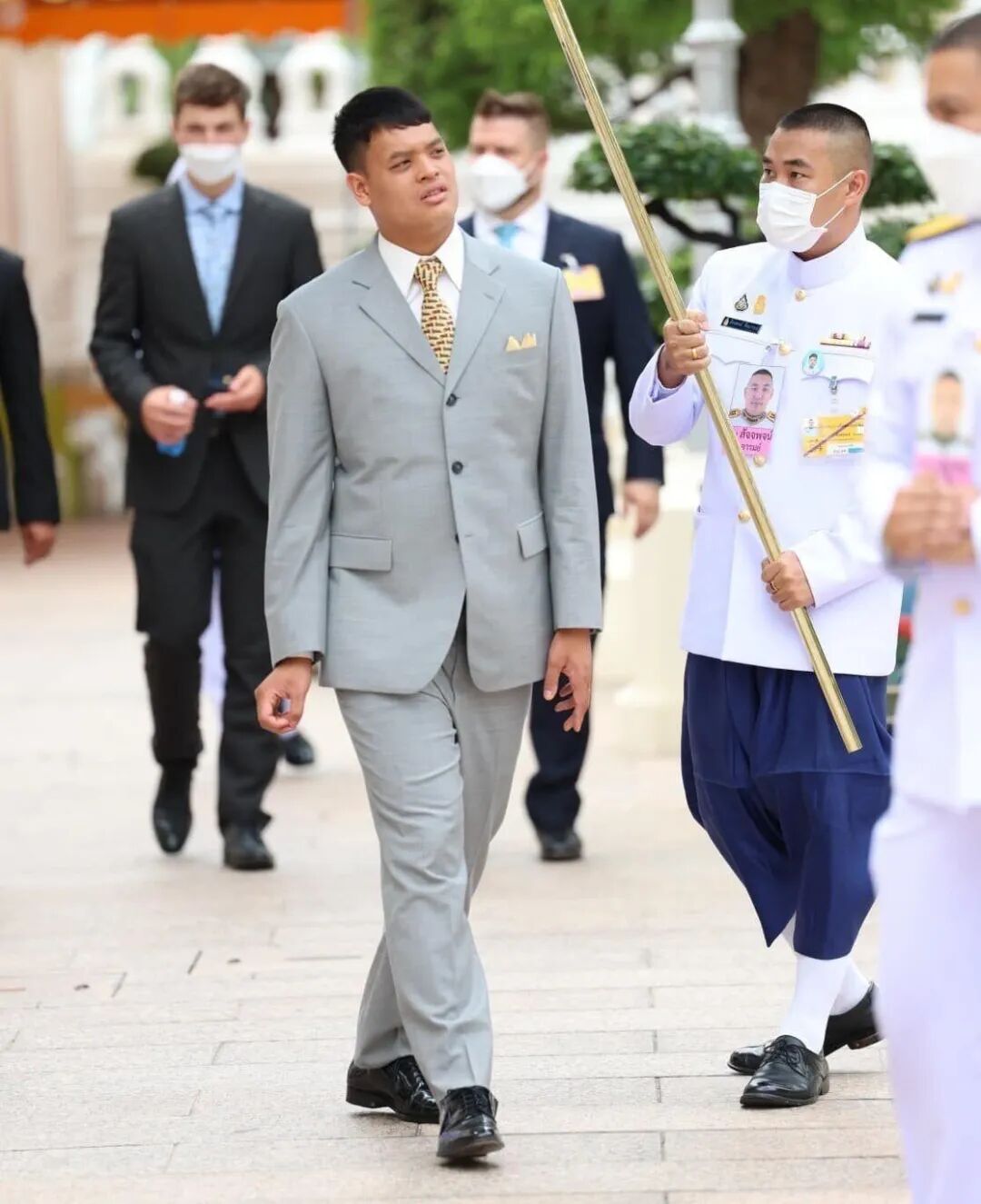 最近前往色军府Phu Phan Rajanives公馆度假途中,还在工作人员的陪同下参观寺庙,举手投足都越来越有“准王储”范儿。