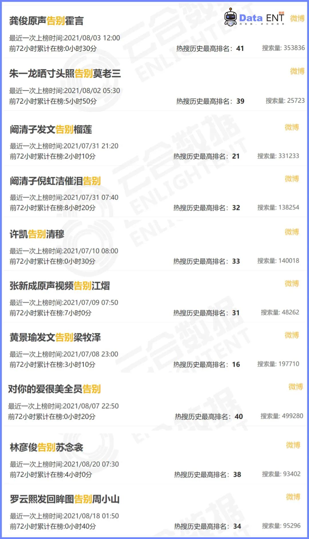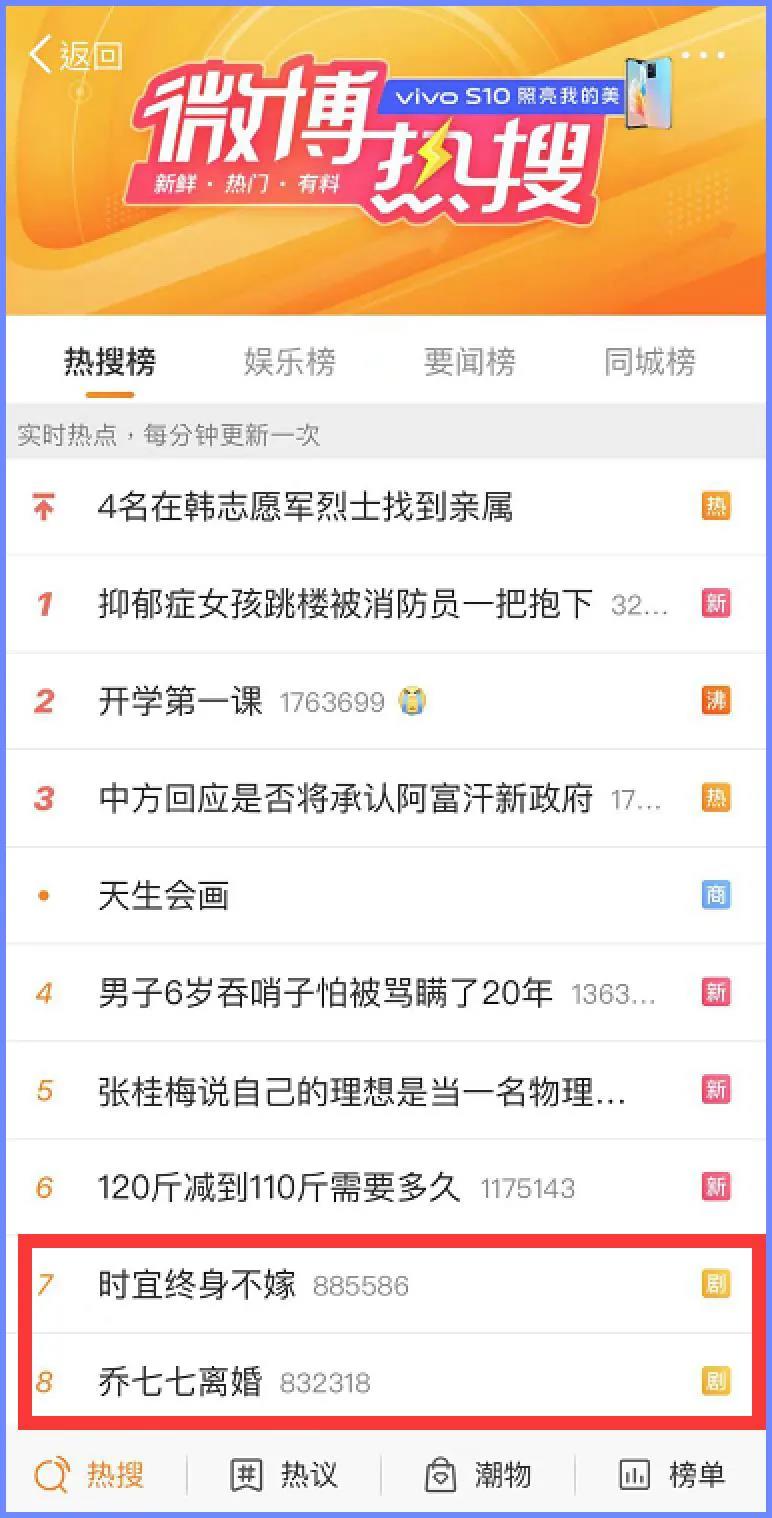 9月1日晚,“影視打工人”微信群裏彈出一條消息:“數娛君發現熱搜榜上幾乎沒有明星了哎,綜藝電視劇的熱搜還多了個小logo”。
