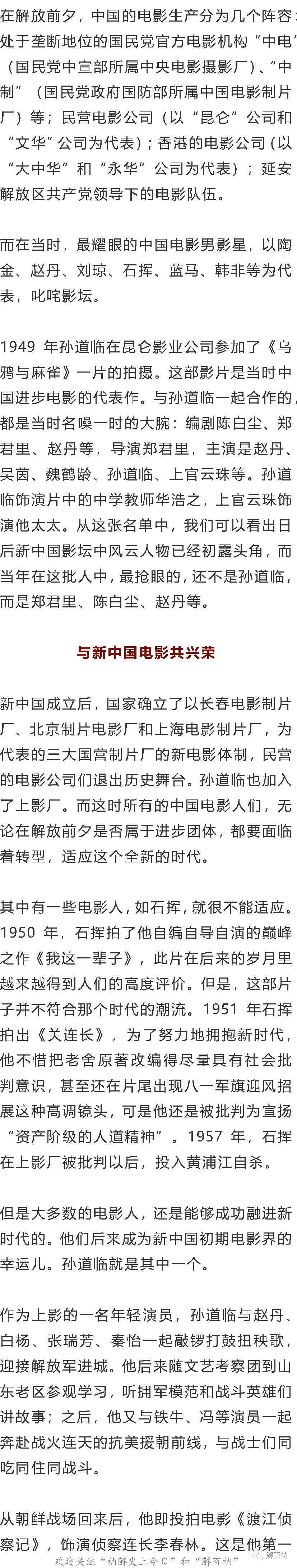 孫道臨的電影時代(美中報道)