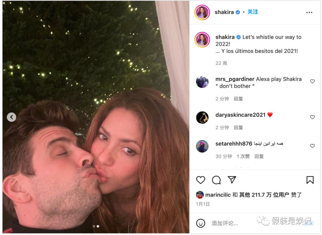 今年跨年的時候,夏奇拉還在ins曬過親密照,迎接2022。