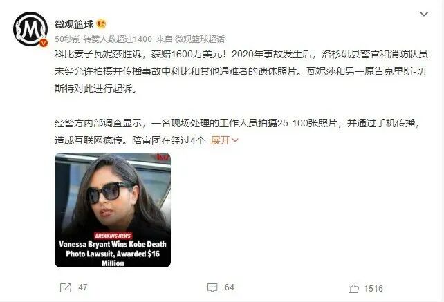 原来,这是因为“科比坠机遗体照遭泄露案判决结果”出来了。