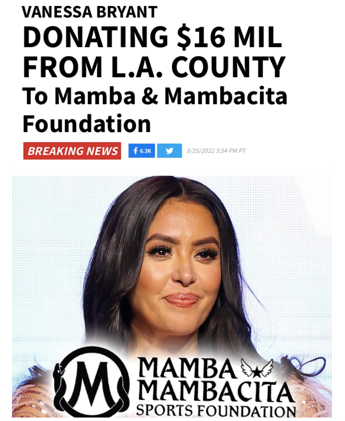 而且,瓦妮莎也已经决定将胜诉获得的1600万美元赔偿,全部捐赠给曼巴和曼巴奇塔体育基金会。