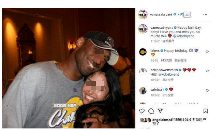 8月24日,瓦妮莎在社交平台晒出了一张与科比的亲密照片。