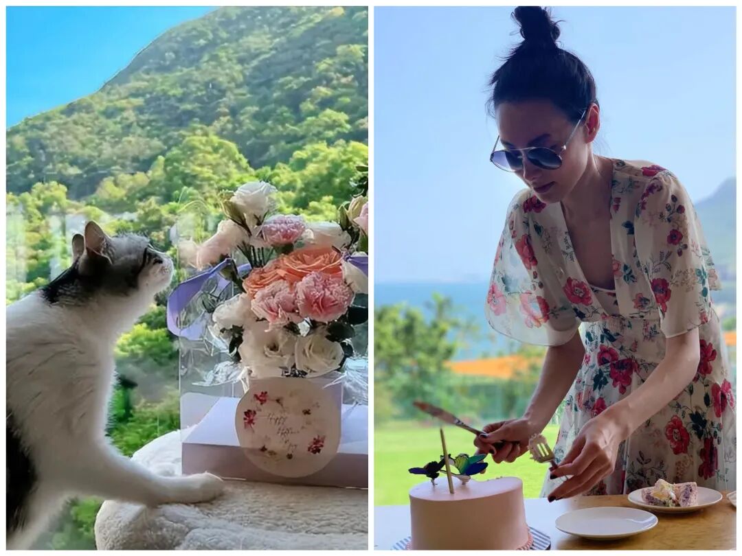 还会做慈善,救助流浪猫,这组给捡回的流浪猫过生日的照片,看起来很是岁月静好,不过也有网友觉得作秀成分更多。