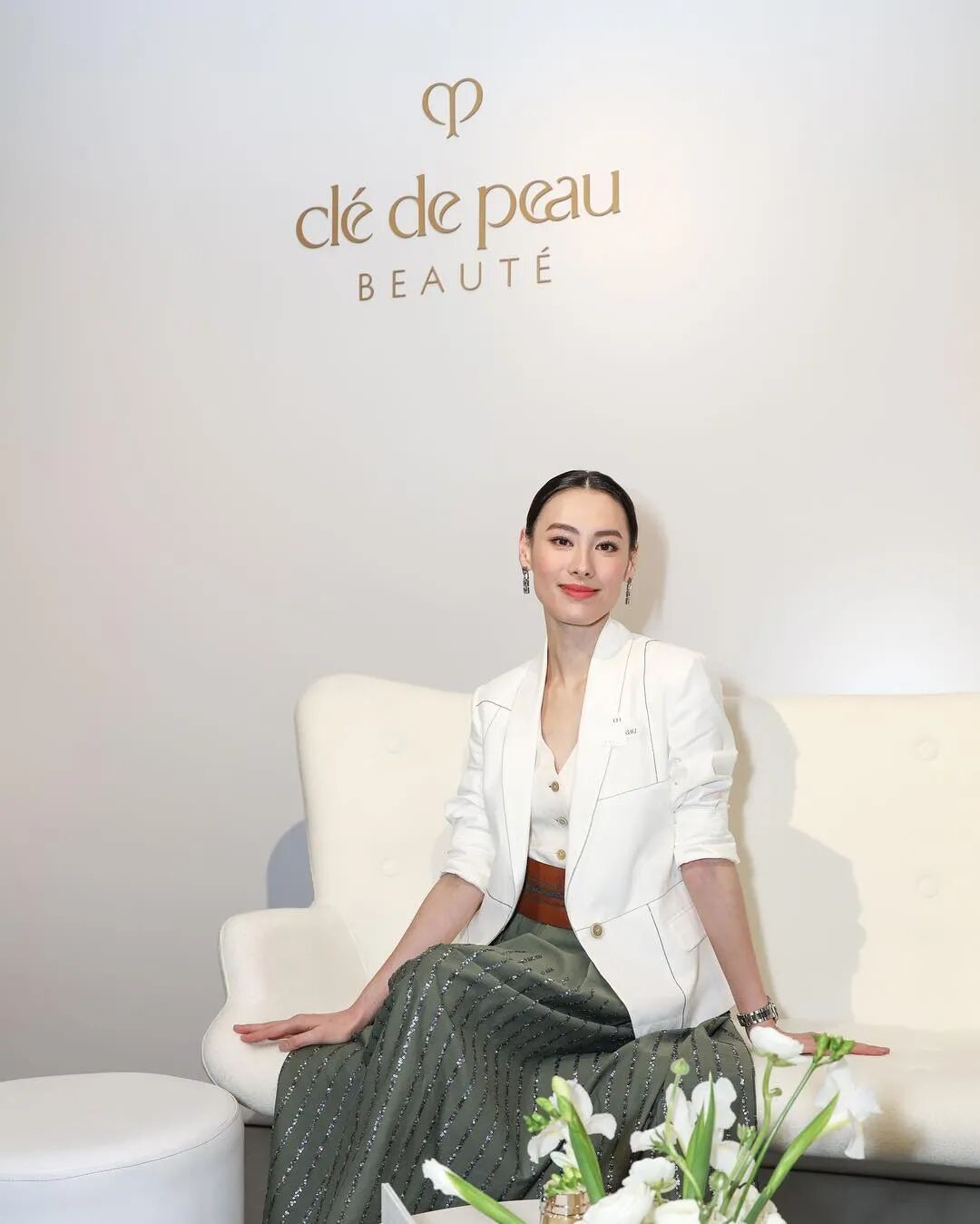 复出第一站就选择了贵妇护肤品牌cpb,和她贵妇的身份倒是蛮契合(“编外”贵妇也是贵妇)。梁洛施身穿Maxmara白色套装,佩戴Tiffany耳环,整体很有港女的飒爽感。合作的经纪人Kim,是认识多年的好友,捧红过Angelababy,圈内还蛮有名~