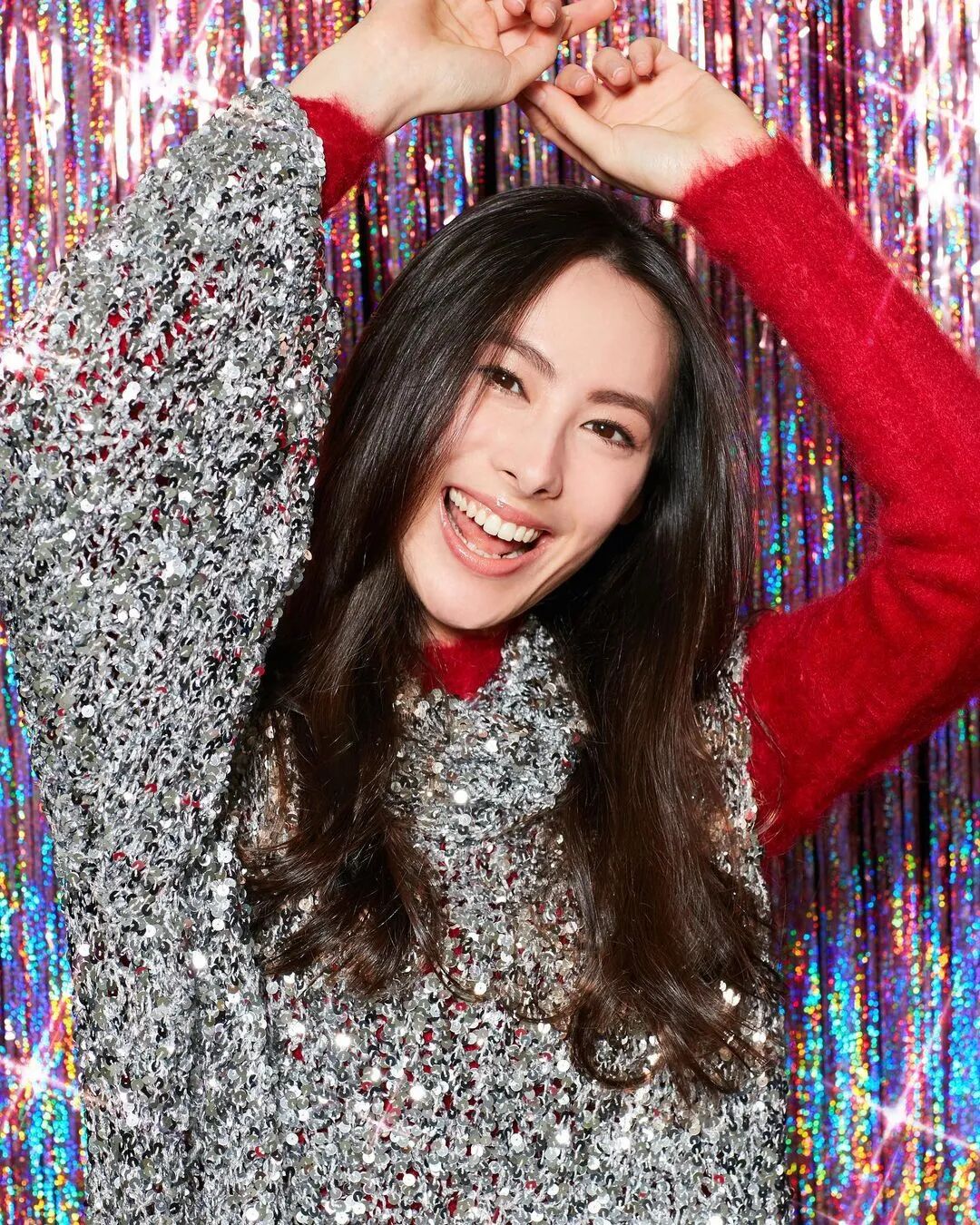 BC红毛衣配亮片罩衫更是闪闪惹人爱,不过高露洁式假笑营业痕迹real明显↓