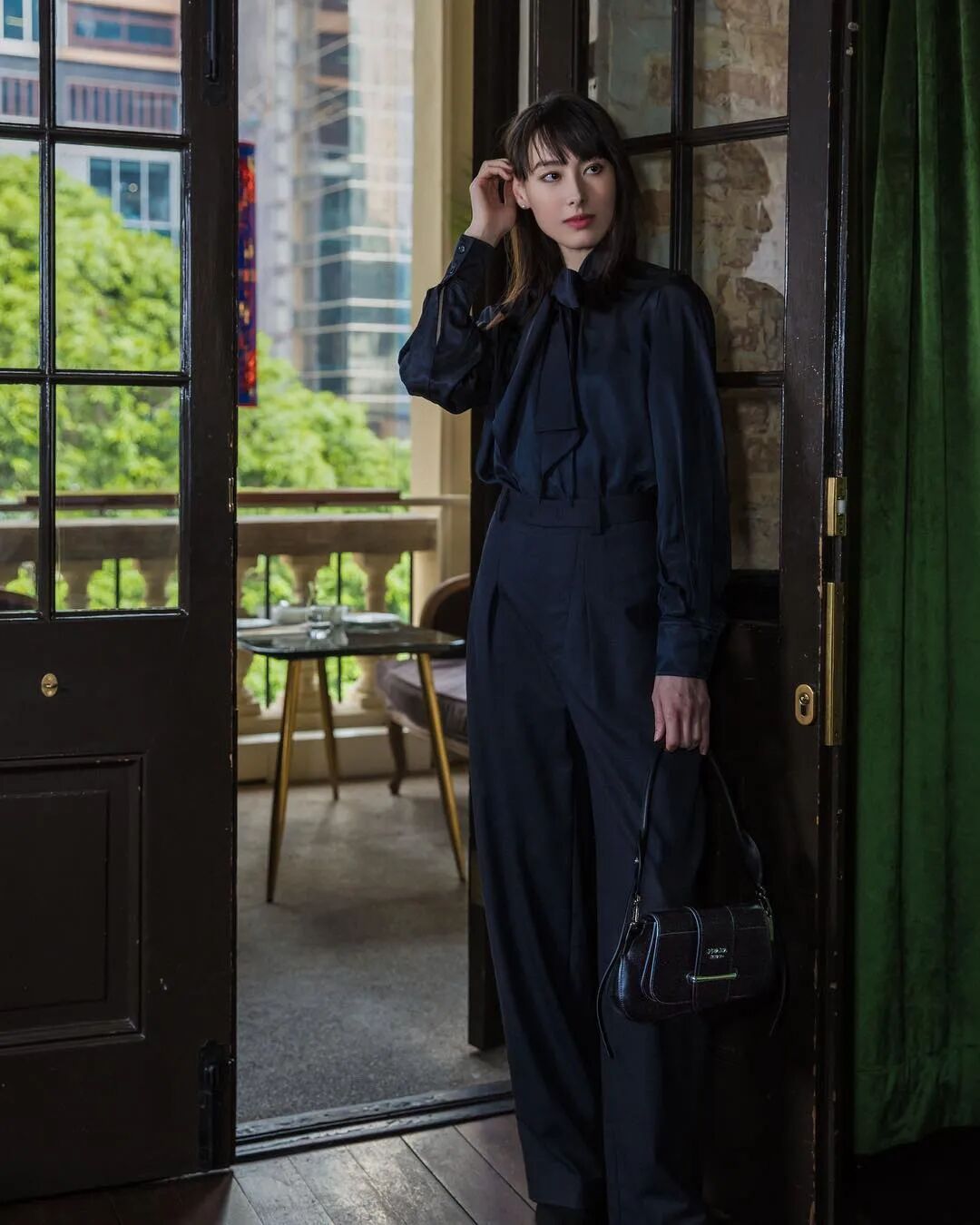 Prada的手提包也是她的心头好,上身还蛮有职业感。