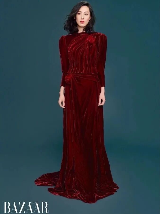 除了帮品牌代言和站台,大刊封面也没少上,时尚资源相当不错。2018年是她的复出元年,可谓动作频频,先是身穿Gucci最新款登封港版《时尚芭莎》,内页的红丝绒礼服裙look也很惊艳。美是美的,就是脸颊感觉瘦得有点凹陷,眼神也略显空洞和疲惫。