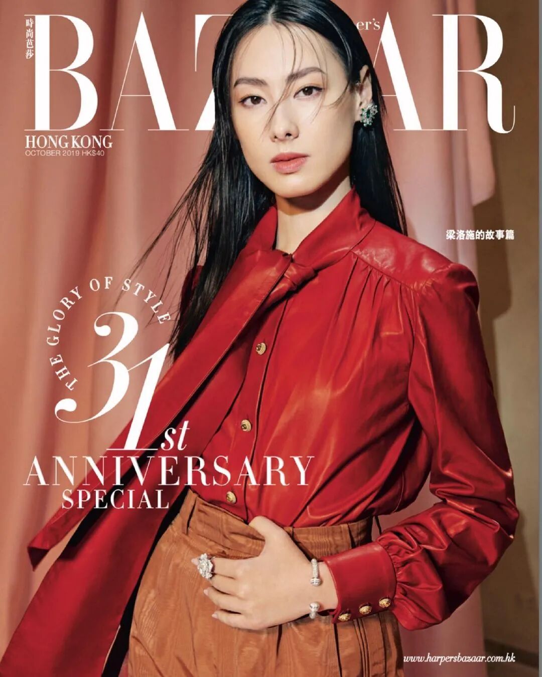 之后又两度登上港版《时尚芭莎》封面,左边2019年这身服装和珠宝分别来自Gucci和Piaget,右边这身是开头提到的开年刊内页造型之一,Ferragamo针织裙+爱彼黑陶瓷腕表的组合刚柔并济,她的眼神中也多了不少故事感。