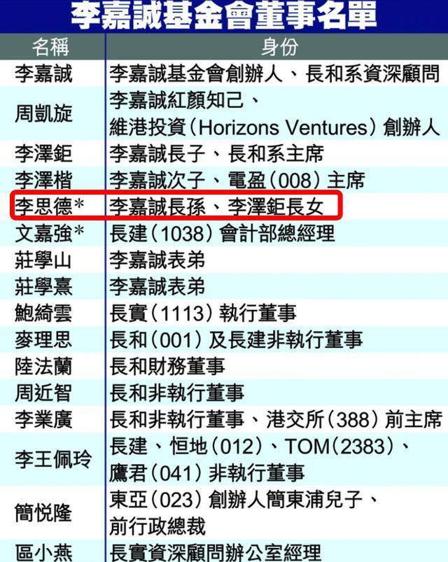 2018年,90岁的李嘉诚宣布退休,李家第三代正式上位。长孙女李思德被委以重任,先是出任慈山寺的董事,随后李嘉诚又让基金会追加了700亿资产,指定由长孙女继承。