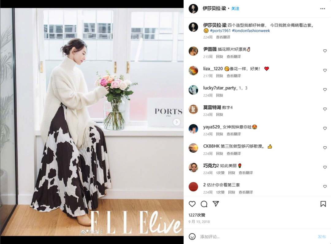 随即又以宝姿代言人的身份征战伦敦时装周,《Elle Live》还做了专访报道。