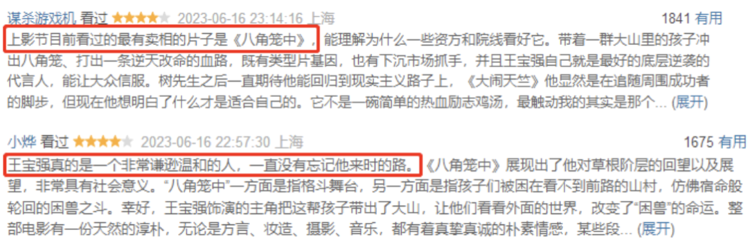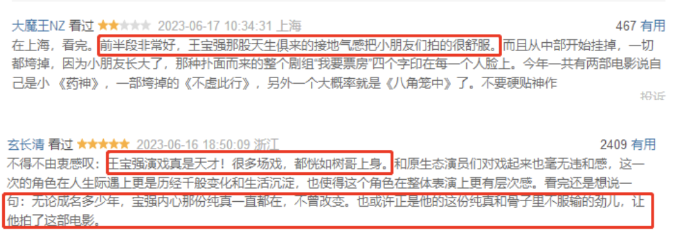 热评里,多数网友都给予了这部电影和王宝强本人相当程度的肯定。