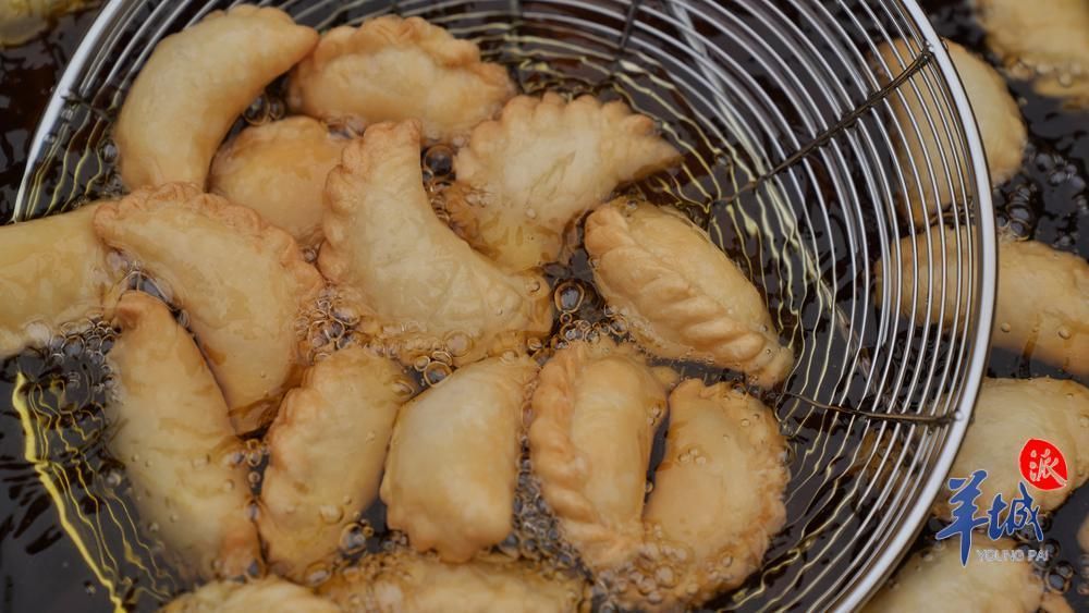 新鲜炸出来的油角、蛋散吸引了不少街坊前来品尝
