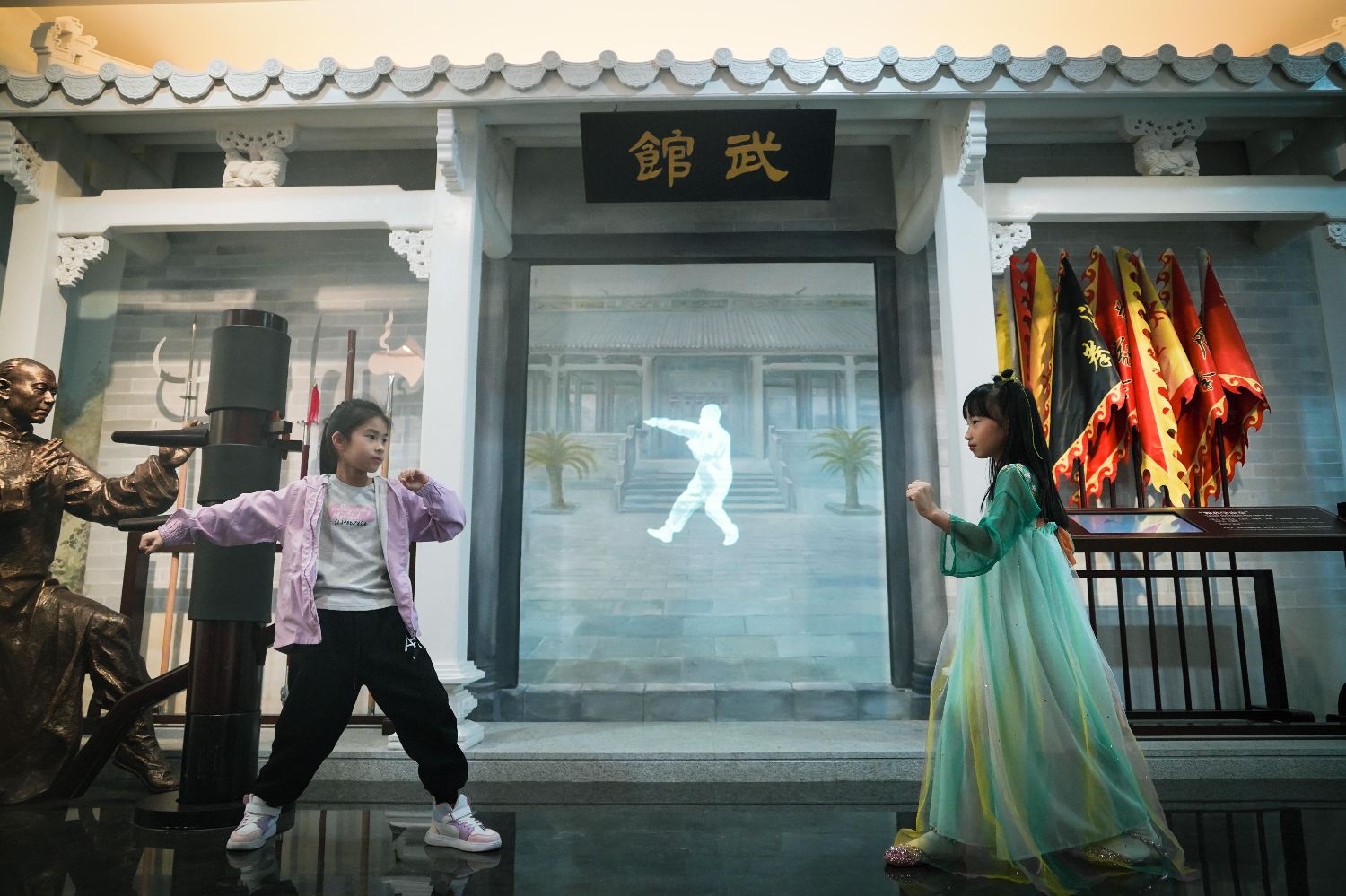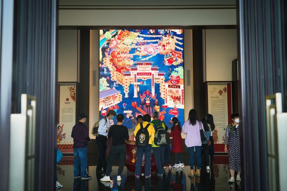 春节期间,新晋网红打卡点——广州市文化馆新馆内,两个非遗展览灵活运用多媒体互动科技,身临其境的互动体验吸引大量游客驻足并参与其中,沉浸式感受传统非遗的魅力。