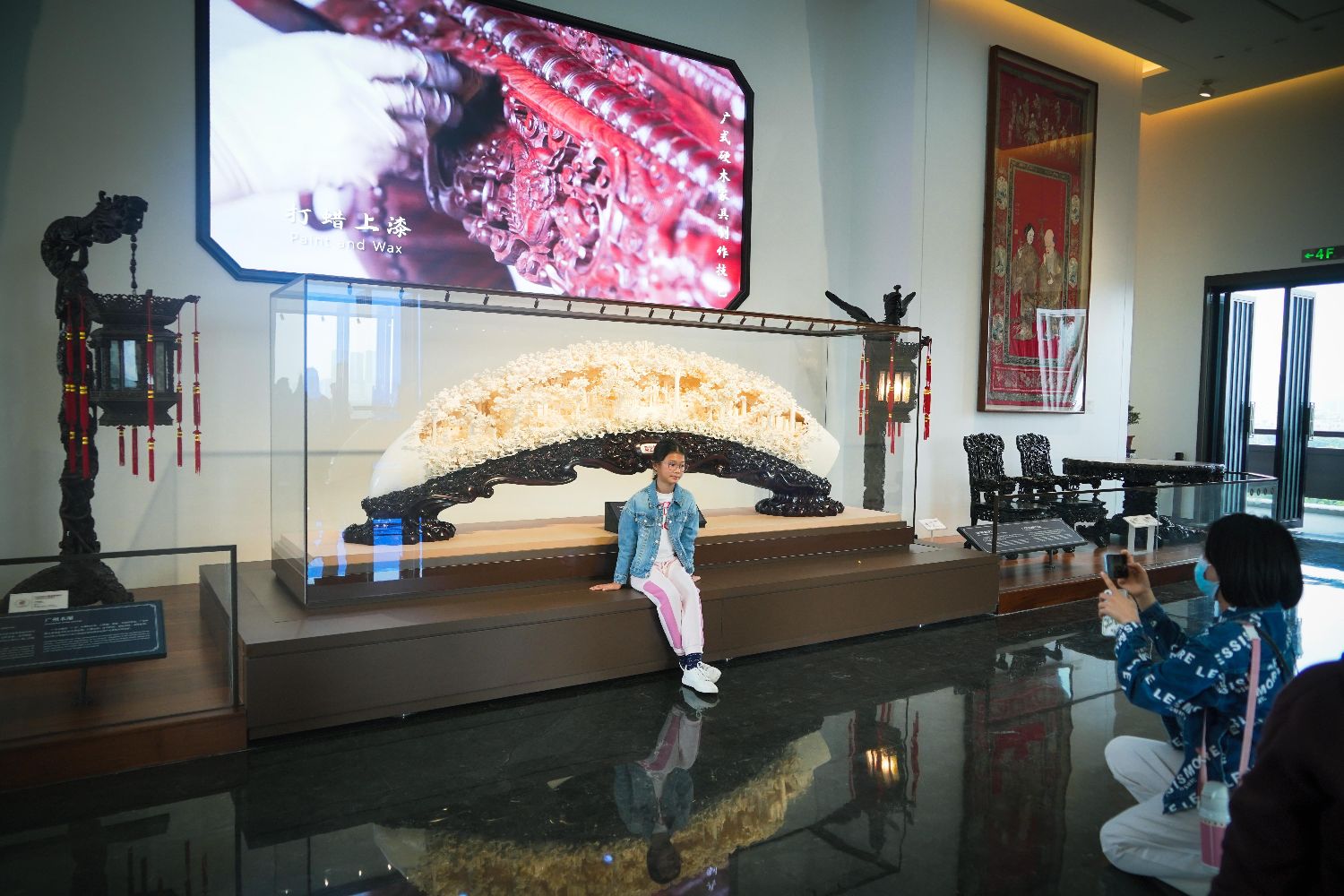 展馆内,各式广作传统工艺精品琳琅满目,牙雕、玉雕、广彩、广绣、广式家具……可谓大师云集、精品荟萃!