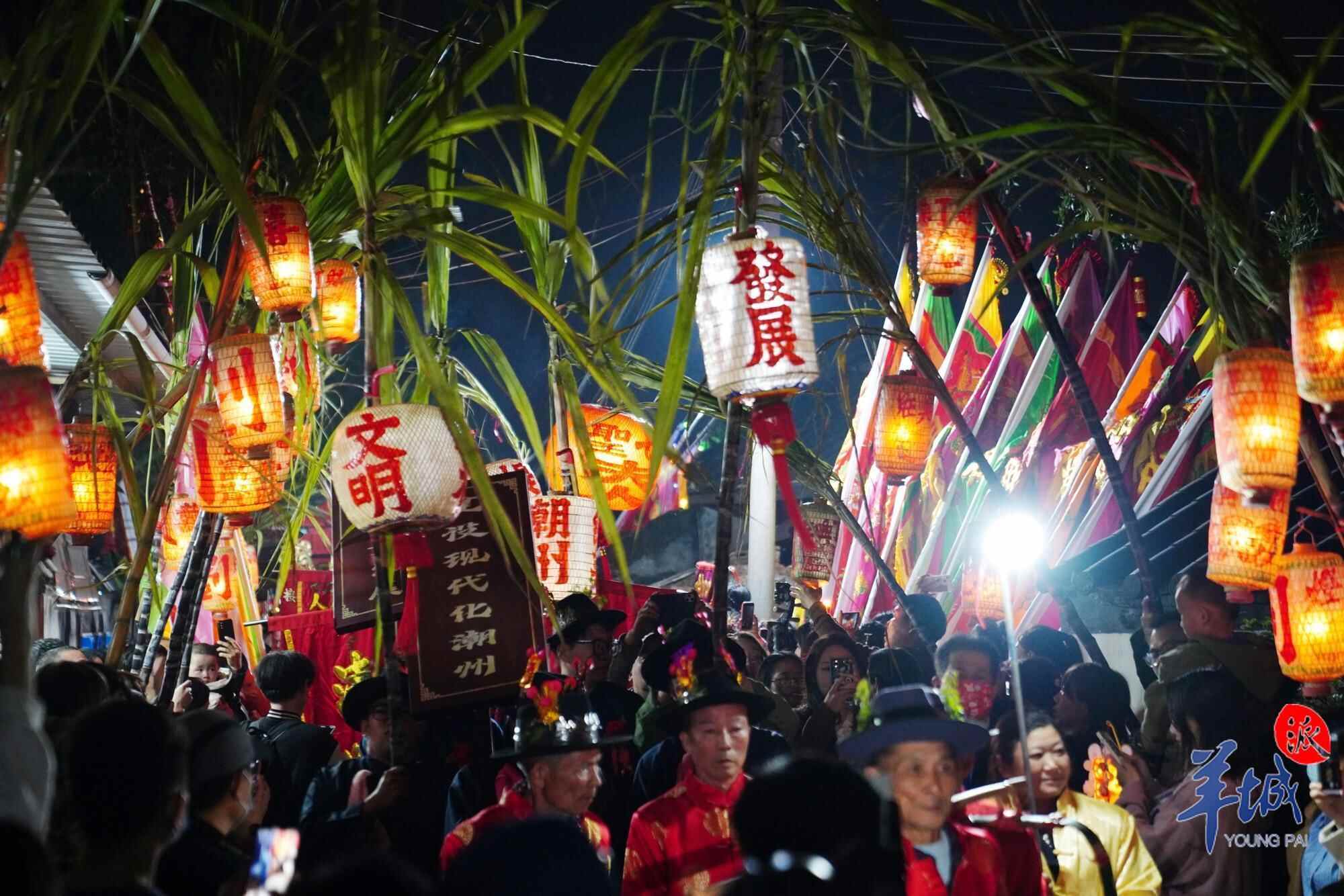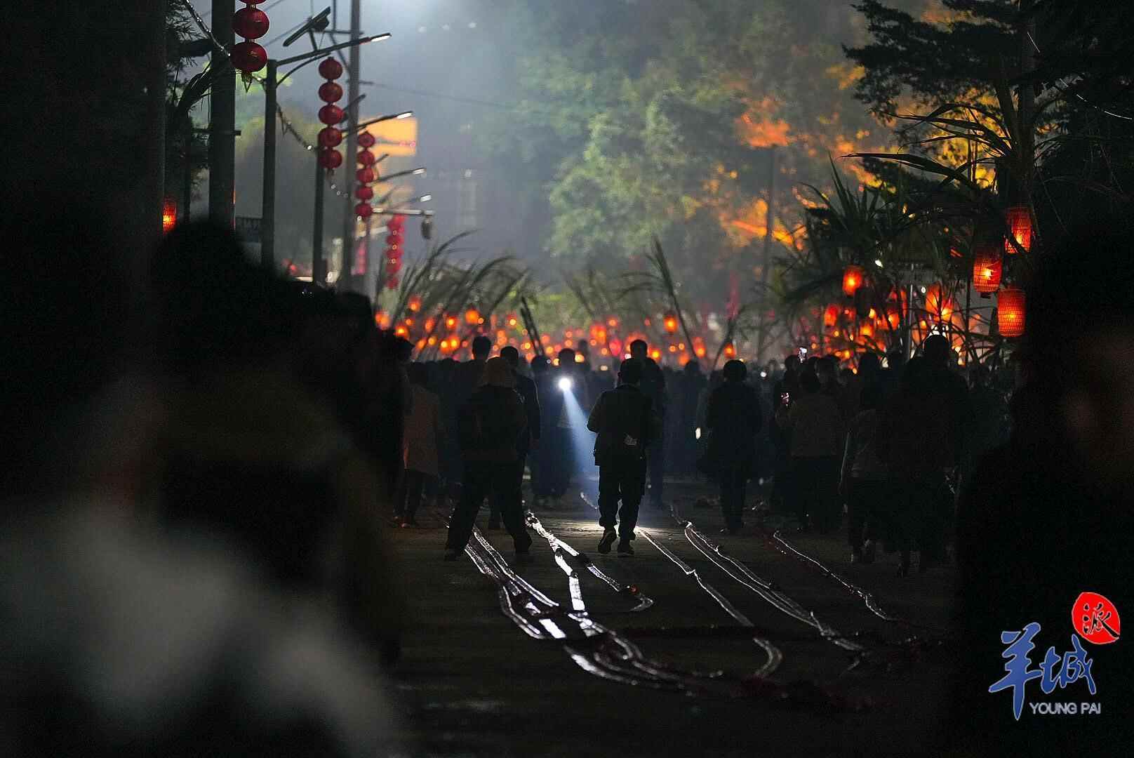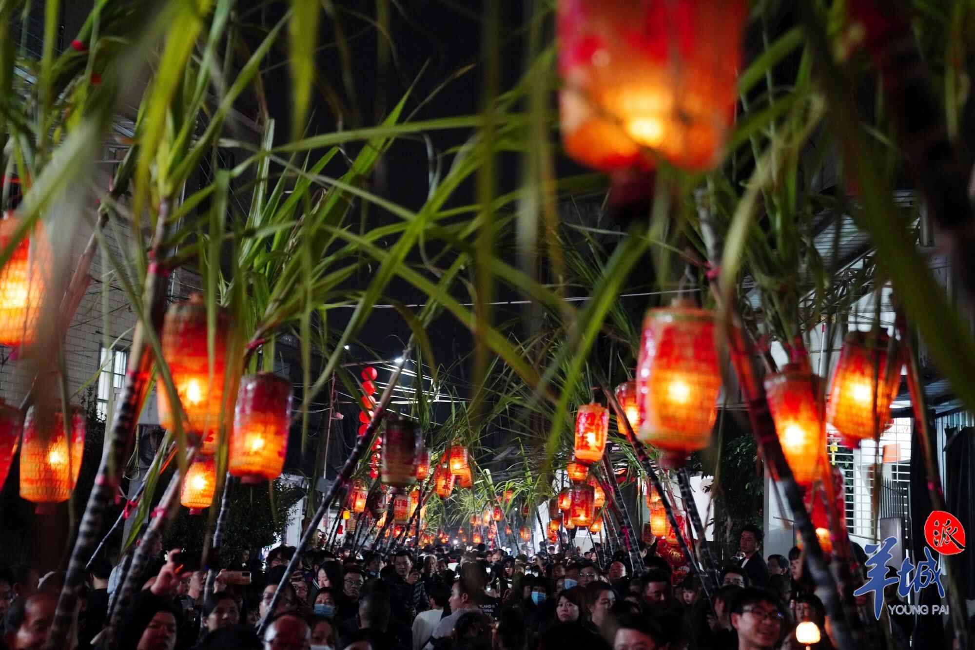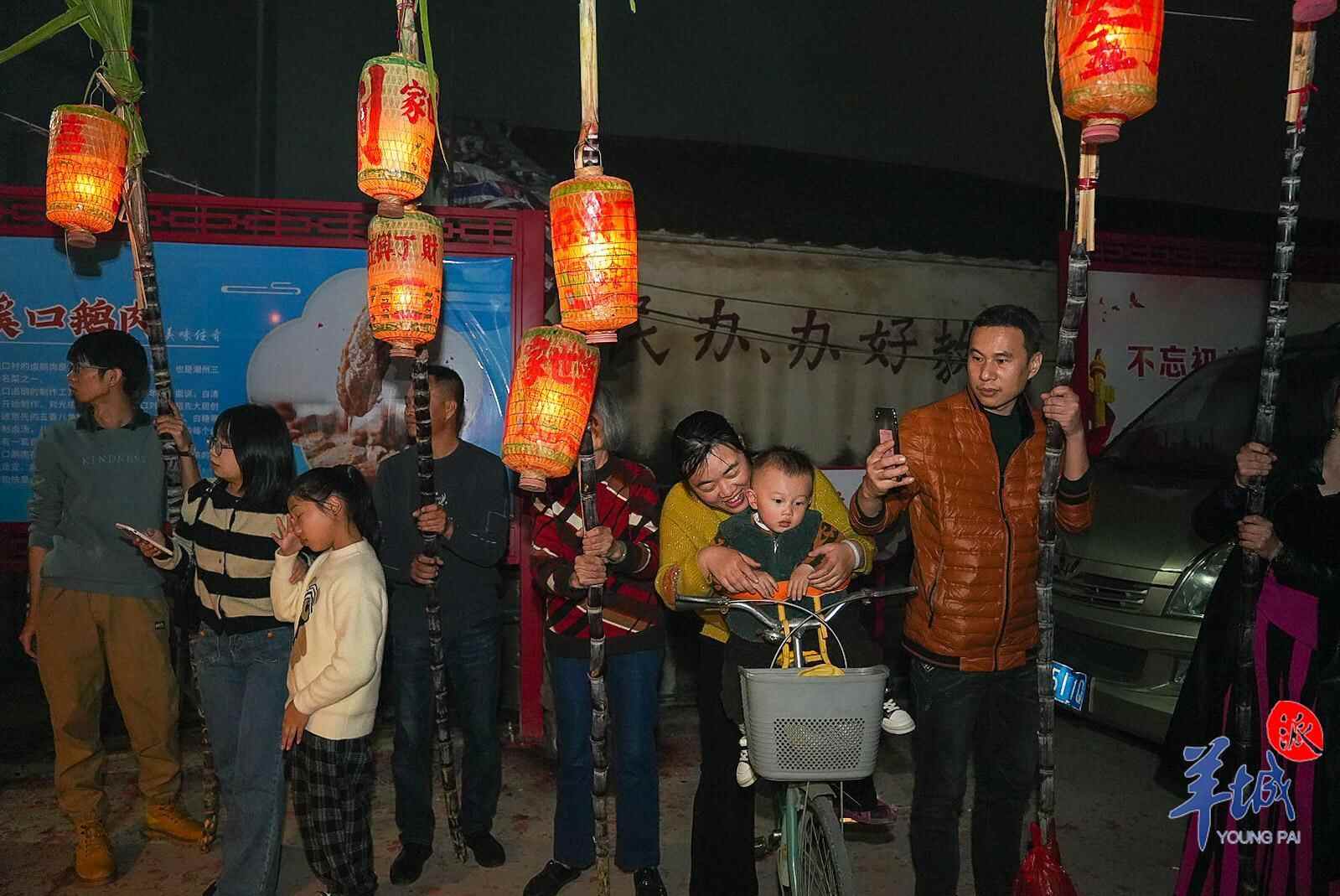 巡游队伍所到之处,撑着“蔗灯”、等候已久的村民会自觉退列成两排,将手中的蔗灯高高举起,有如甘蔗林里蔗与蔗之间的通道,让巡游队伍从“蔗巷”穿过。