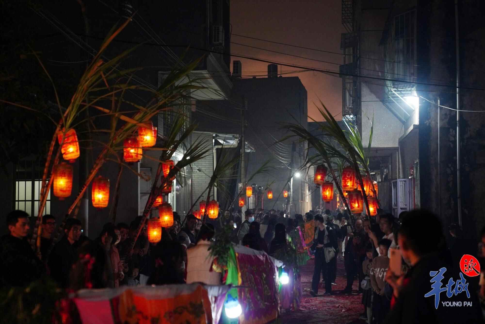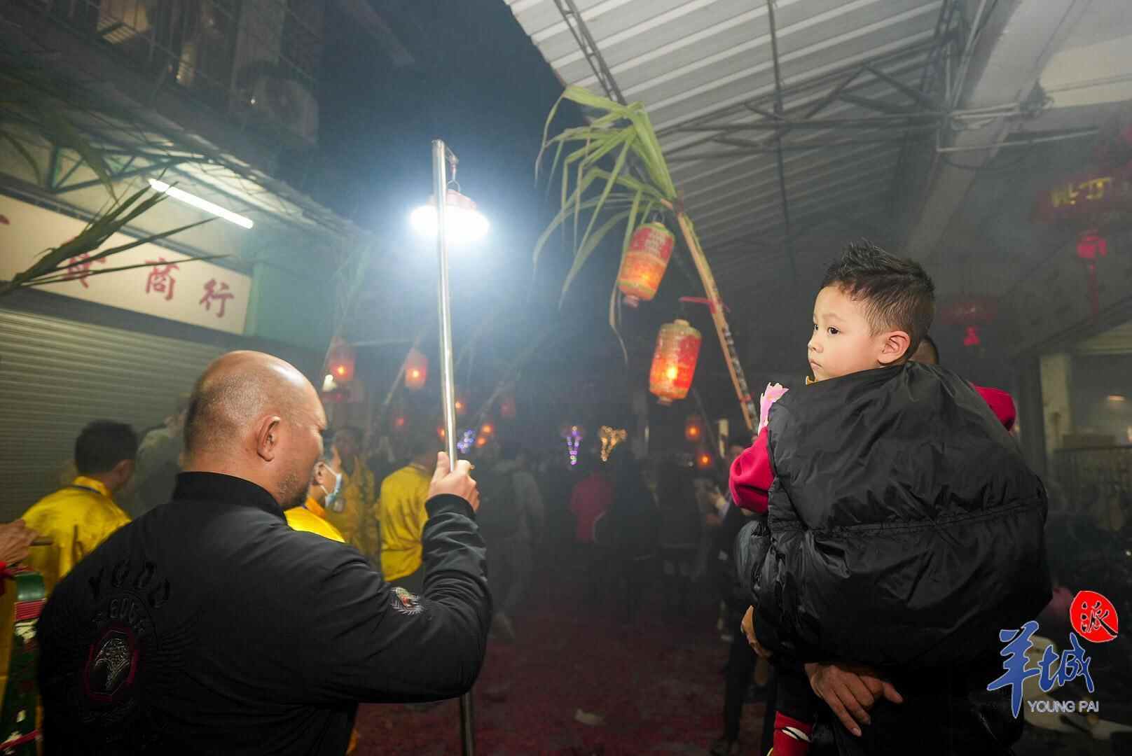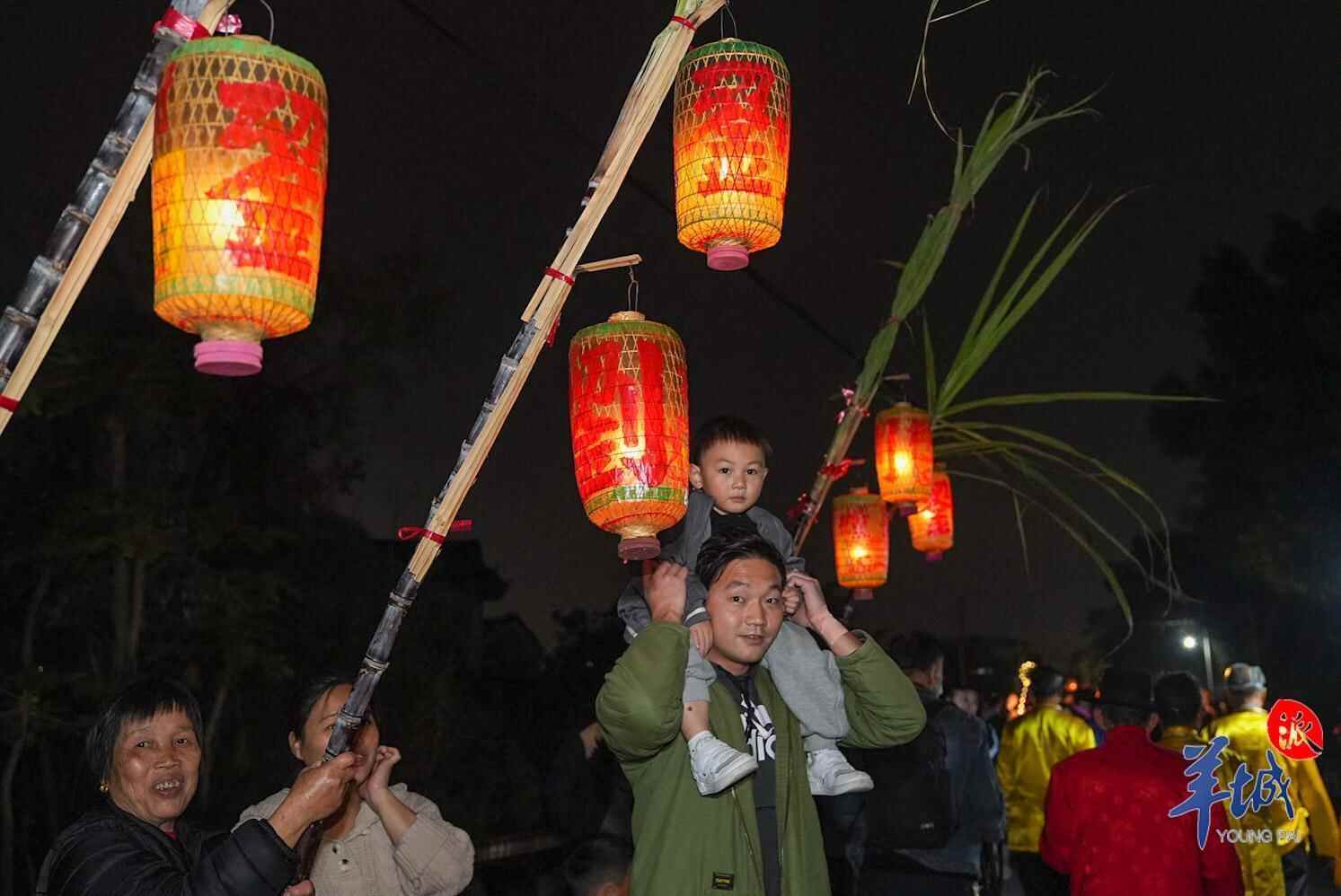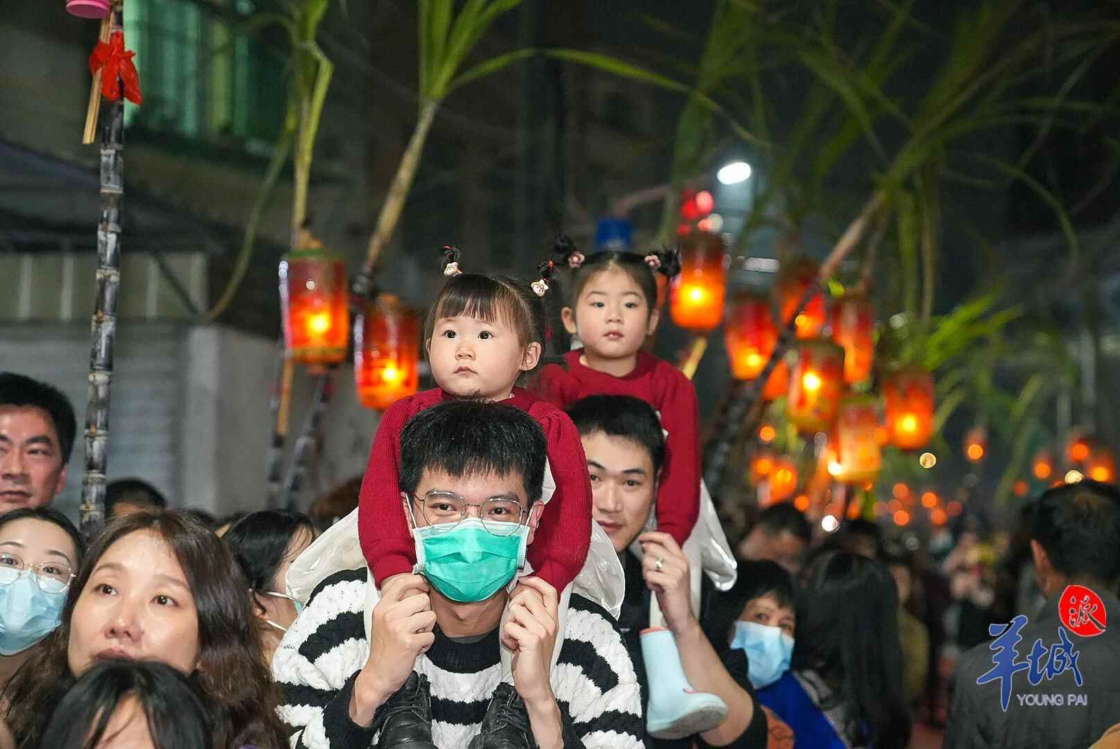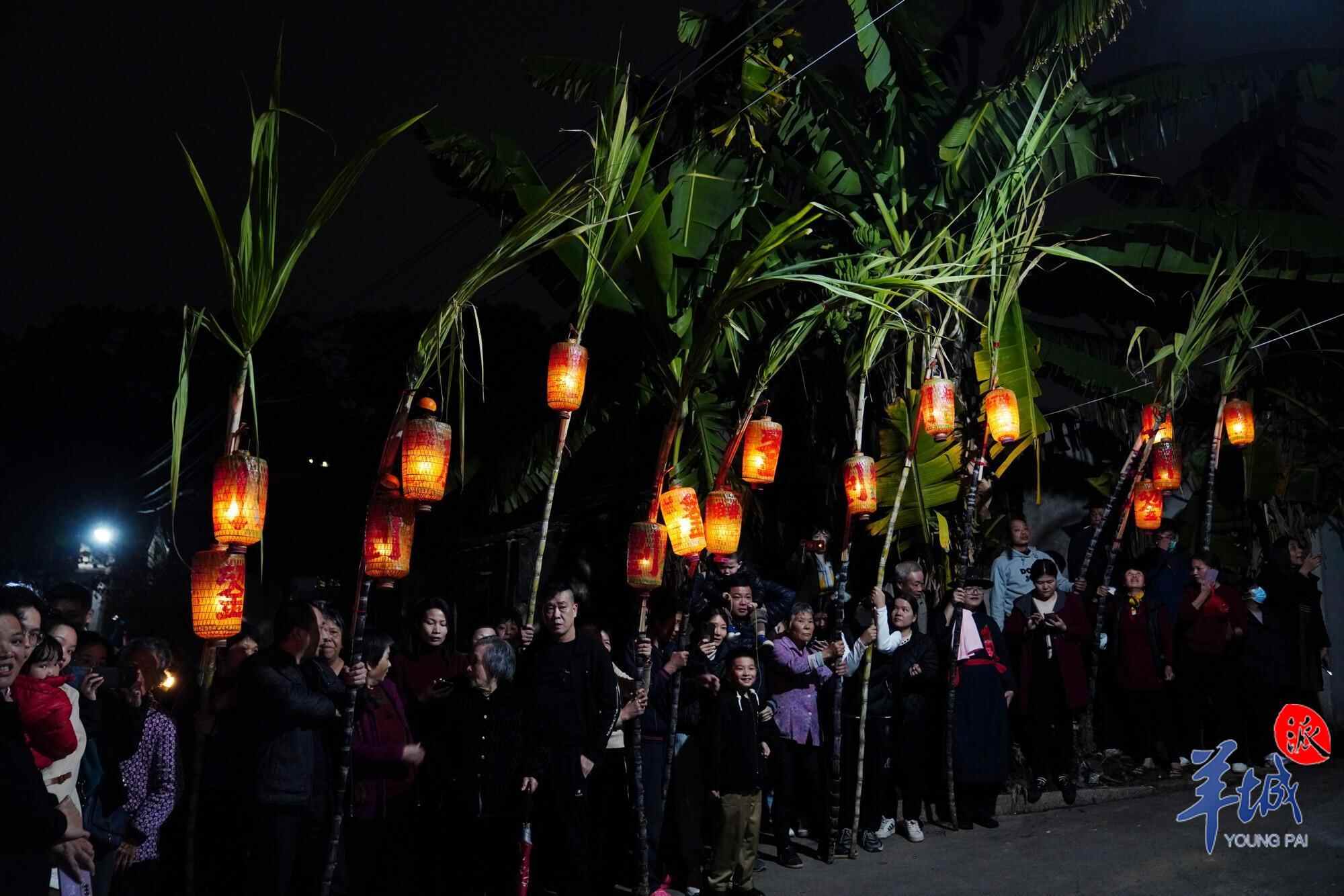巡游队伍所到之处,撑着“蔗灯”、等候已久的村民会自觉退列成两排,将手中的蔗灯高高举起,有如甘蔗林里蔗与蔗之间的通道,让巡游队伍从“蔗巷”穿过。