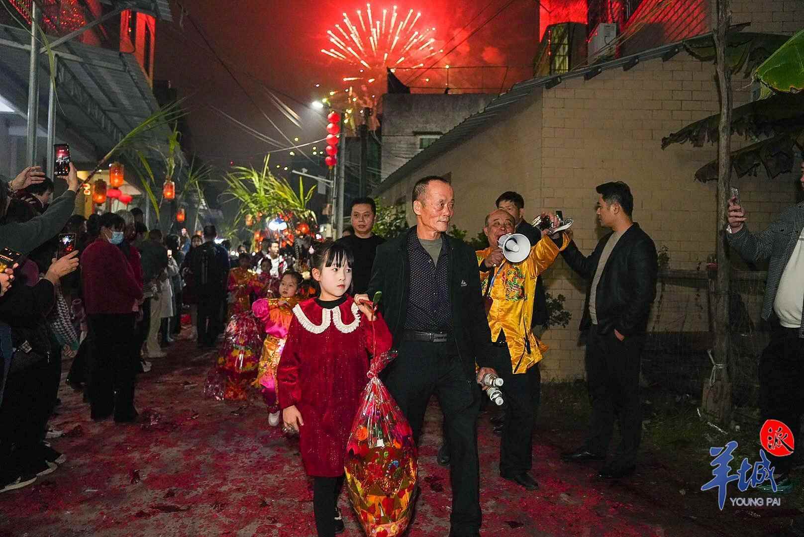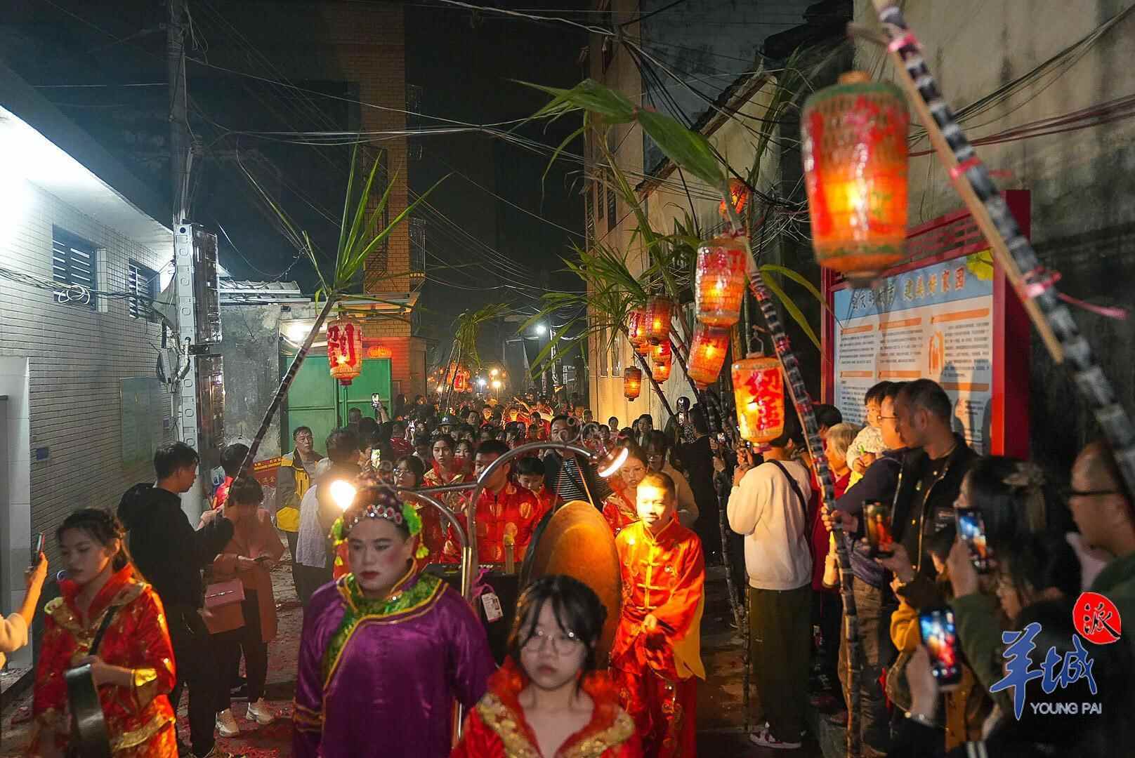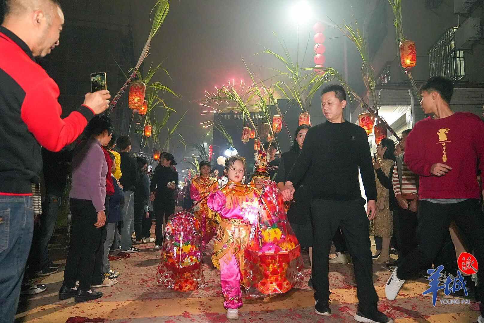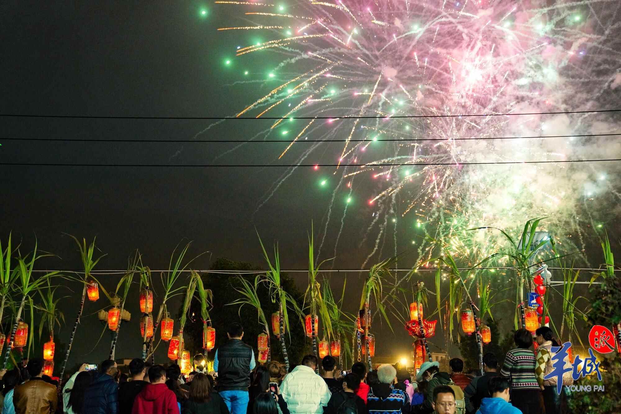 巡游队伍所到之处,撑着“蔗灯”、等候已久的村民会自觉退列成两排,将手中的蔗灯高高举起,有如甘蔗林里蔗与蔗之间的通道,让巡游队伍从“蔗巷”穿过。
