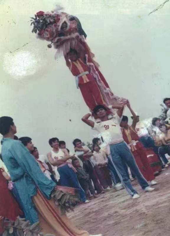 赵伟斌儿时与父亲一起表演舞狮受访者提供