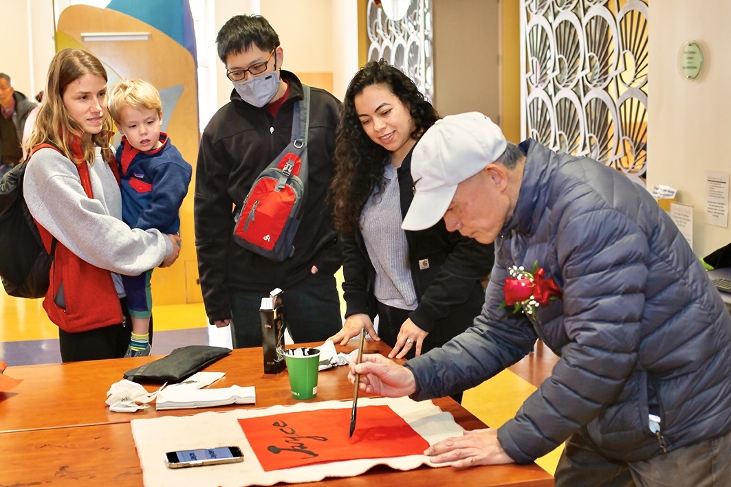 谢世明在活动中为美国群众即兴设计英文字体。