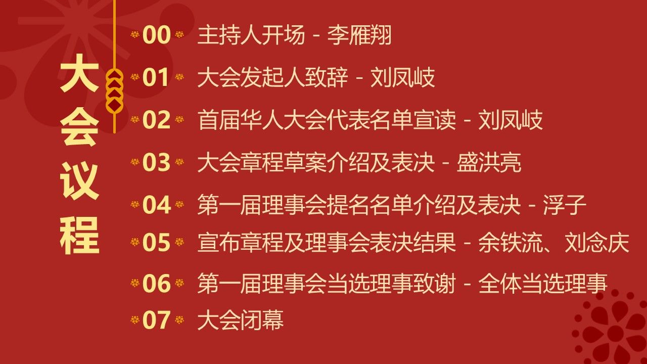 大会结束后,华人大会第一届理事会召开了会议并全票通过姜延先生为理事长、李雁翔先生为副理事长、刘凤岐先生为执行长。(文字供稿:华人大会秘书处图片供稿:江维、荣伟)