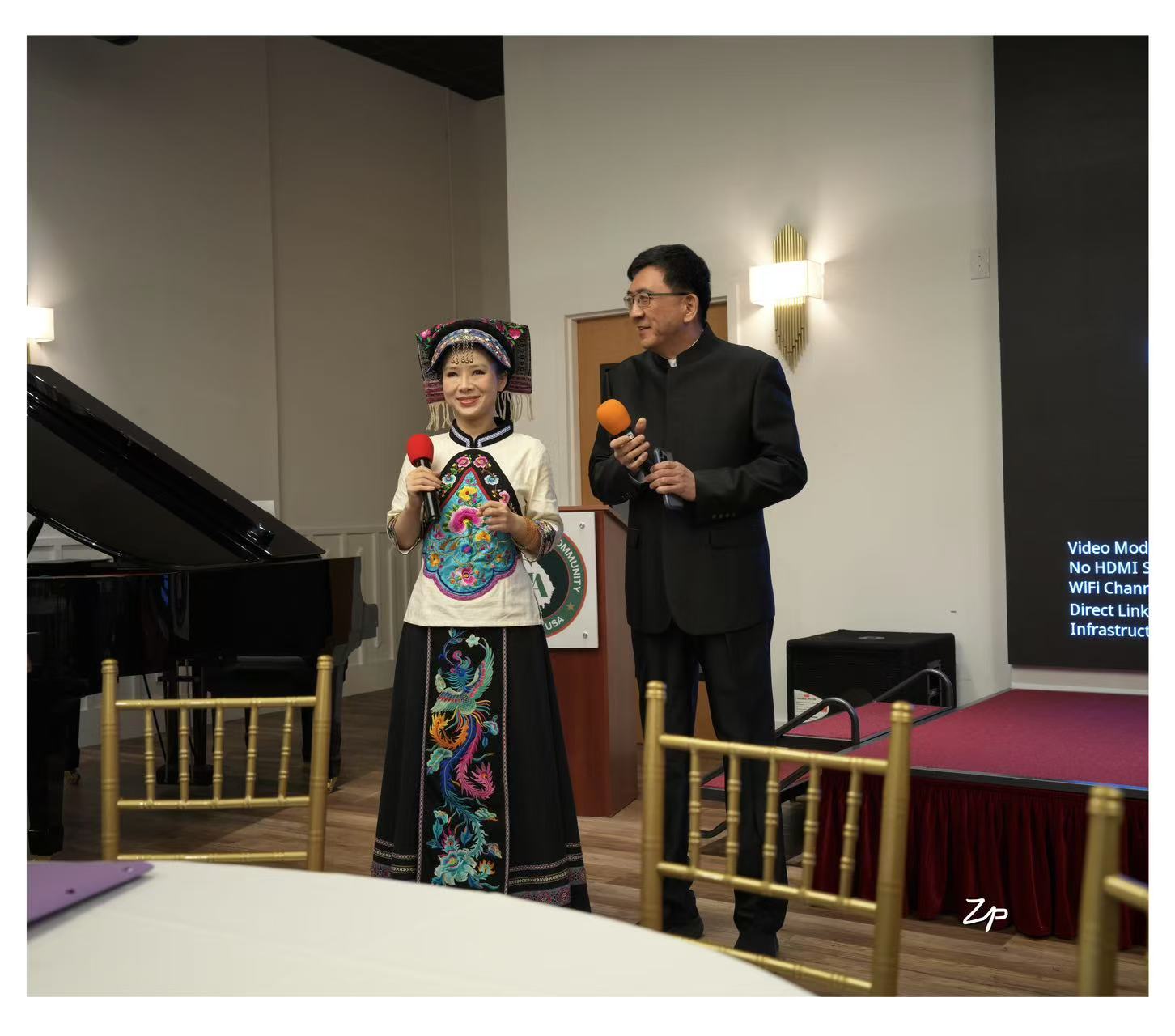 见面会由亚城著名主持人何承贤(中文主持)和醒醒(英文主持)联袂主持。何承贤老师幽默风趣妙语连珠。醒醒知性美丽文采斐然。他们配搭默契,珠联璧合,为粉丝见面会增添了魅力和精彩。ACP会长曾冰女士在致辞中高度肯定刘赛:她用音乐超越障碍,展现了华语艺术的高度。