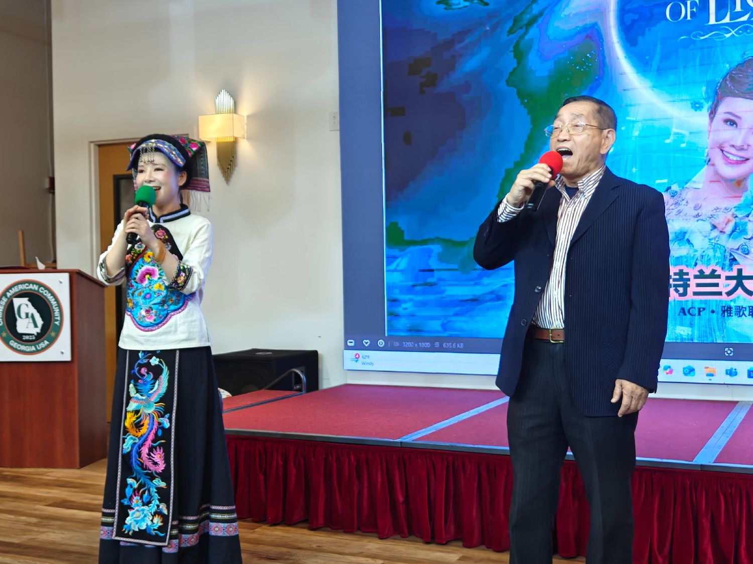 开场节目原创歌曲《静夜思》由刘赛携TrueTone Youth Choir(伯乐少年合唱团)演绎。TrueTone Youth Choir成立于2024年,是亚特兰大一支公益专业艺术团体,通过中西融合的专业训练致力于传承中华音乐文化并拓展全球视野。这首《静夜思》由华语歌曲创作人朱临湘谱曲,2011星光大道全国总冠军刘赛指导、钢琴家陈佳淮编曲并伴奏。悠扬的钢琴前奏缓缓流淌,童声合唱团的孩子们朗朗吟唱:“床前明月光,疑是地上霜。举头望明月,低头思故乡。”紧接着,刘赛的天籁之音加入,唱响李白的《古朗月行》,将诗人遥忆童趣、思古忧今的乡愁娓娓道来。整首歌曲宛如一幅月色下的思乡画卷,让在场观众沉浸在绵长幽深的诗意氛围中。
