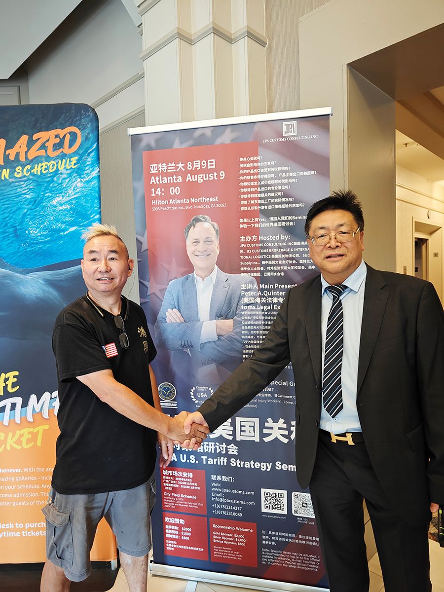 此次美国关税应对策略研讨会主办方:JPA CUSTOMS CONSULTING,INC.美国海关事务顾问、US CUSTOMS BROKERAGE&INTERNATIONAL LOGISTICS(美国报关物流公司)、S&D Supply Inc.、美国美中经贸文化友好协会、亚特兰大中华专业人士协会、对外经济贸易大学校友会、《美中报导》传媒集团、巴蜀同乡会馆等。