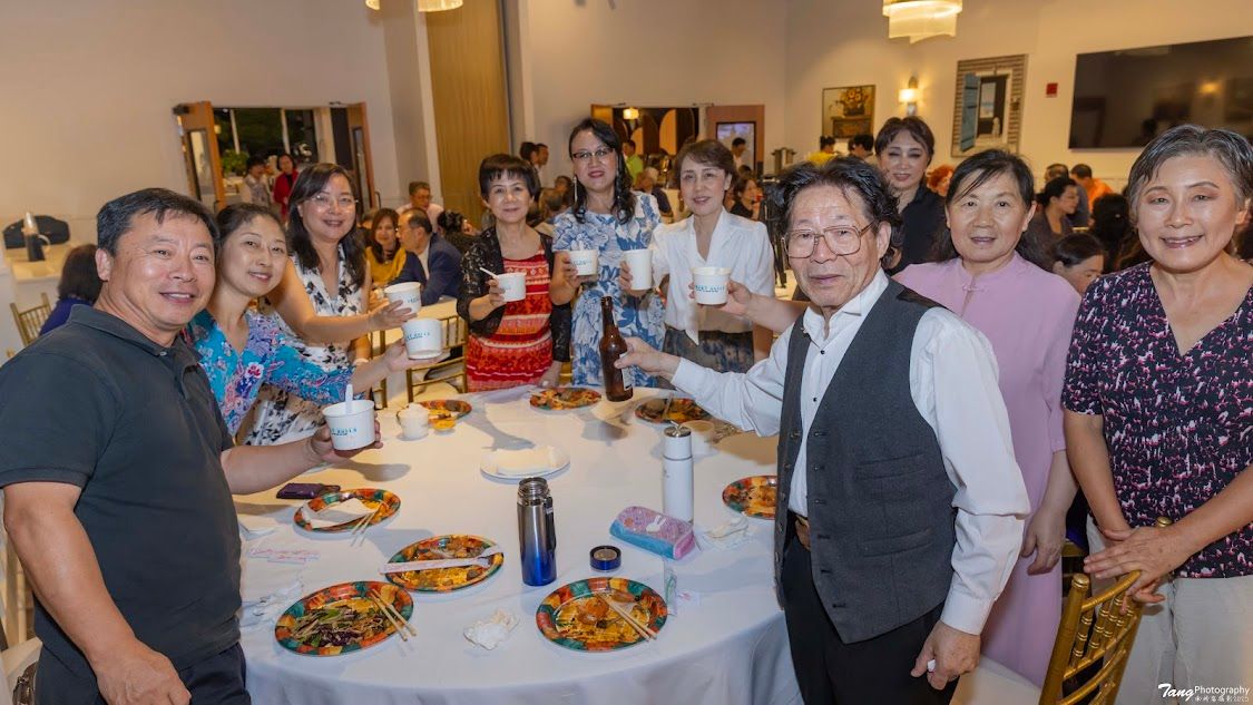 酒会上,来自各地合唱团的成员们亲切交流,畅叙友情。这天正值著名指挥家张椿和先生80岁生日,合唱团员们献给他《Happy Birthday to You》。