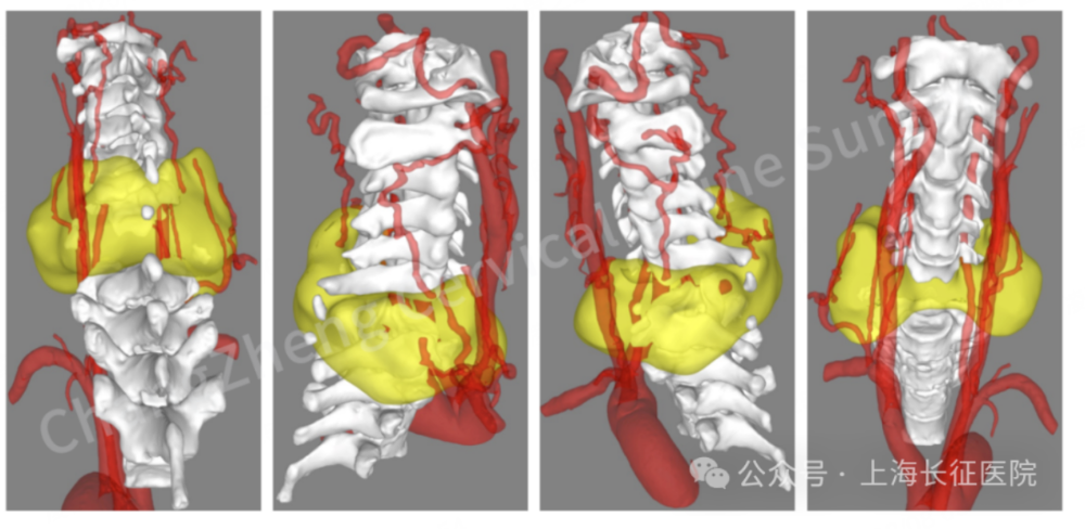 6月18日13时,手术正式开始,在打开并分离患者颈椎前侧软组织后,发现颈部有大量淤血肿块,椎前筋膜也全部鼓起,“由于它们阻碍了手术视野,一时难以判断下方是什么部位或组织。”陈华江说。
