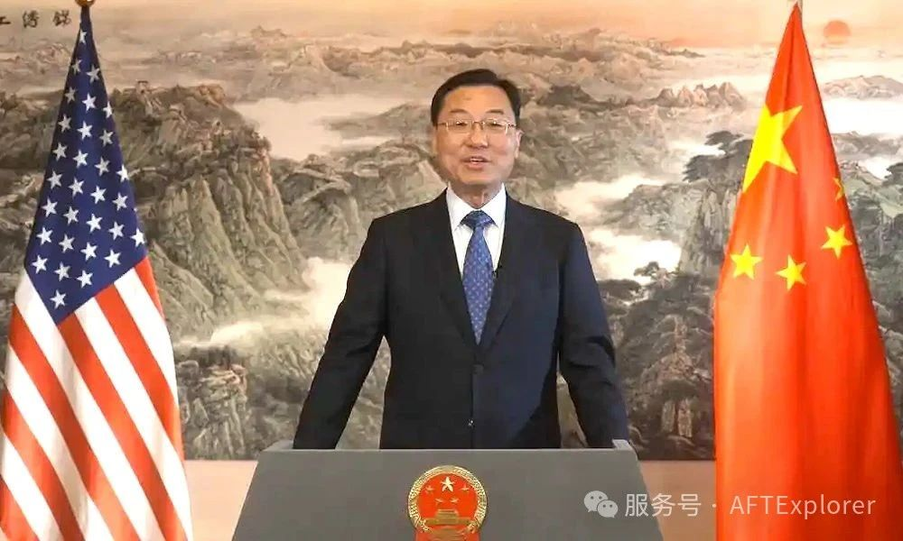 中国驻美大使谢锋上个月给正在新疆西部地区参观访问的美国师生发送了一段视频信息,告诉他们空军的精神“体现了中国和美国共同守护和平的勇气和决心。”