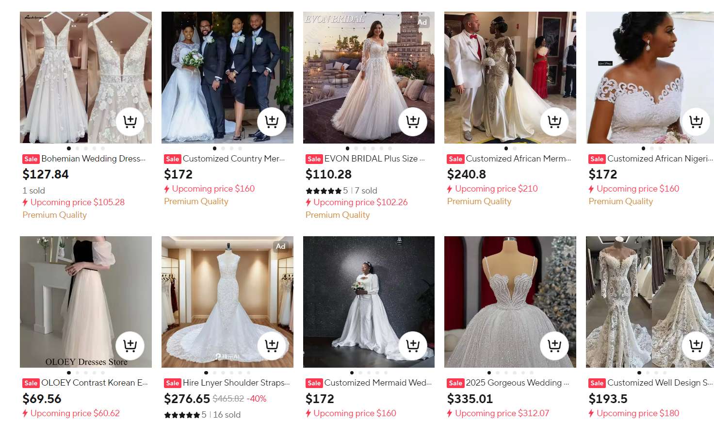 一件普通的中國婚紗售價僅幾十到幾百美元,價格遠低於本土品牌。