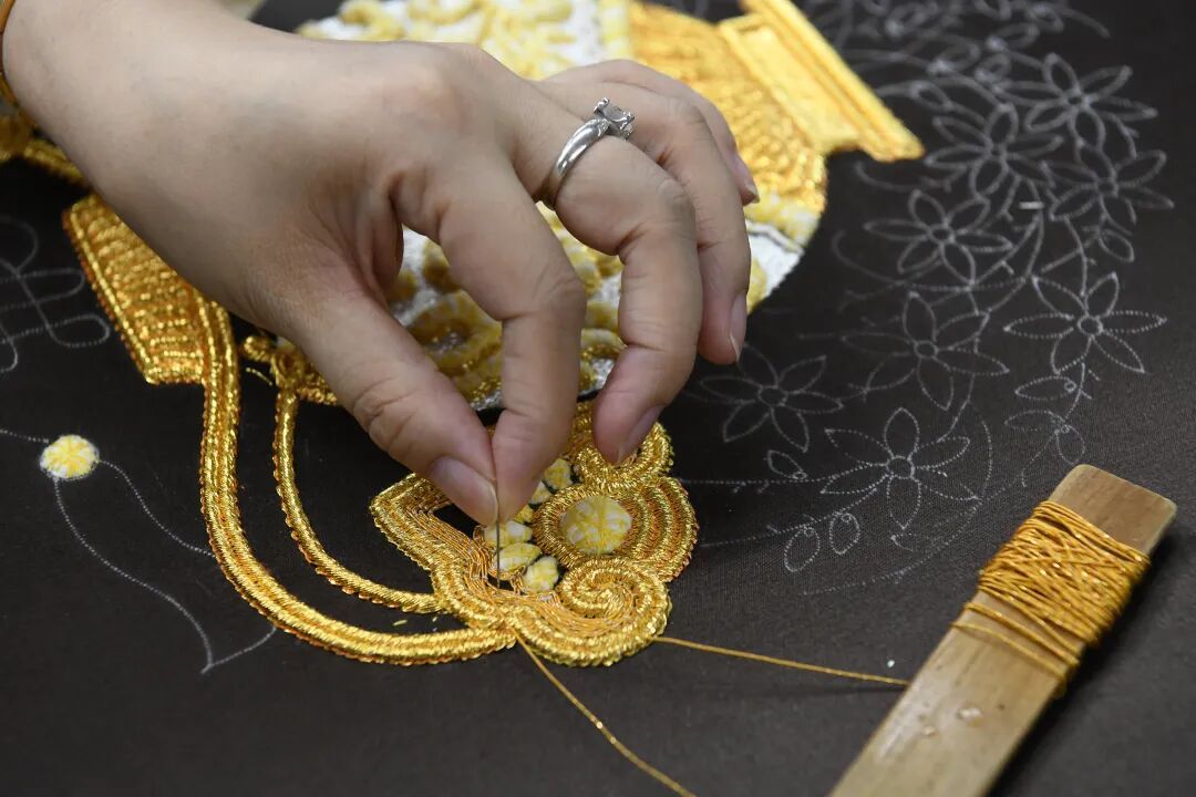 潮州繡娘的珠繡工藝可以做到珠片、鑽石、珍珠隨意組合排列,其他地方模仿不來;
