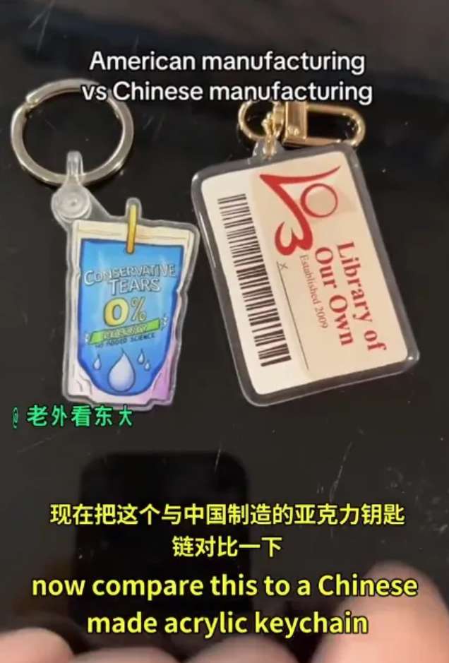 Tiktok上曾有一個美國老闆吐槽,她要定制一批亞克力,找了一家美國工廠定制了一個亞克力鑰匙扣,結果品質一塌糊塗。