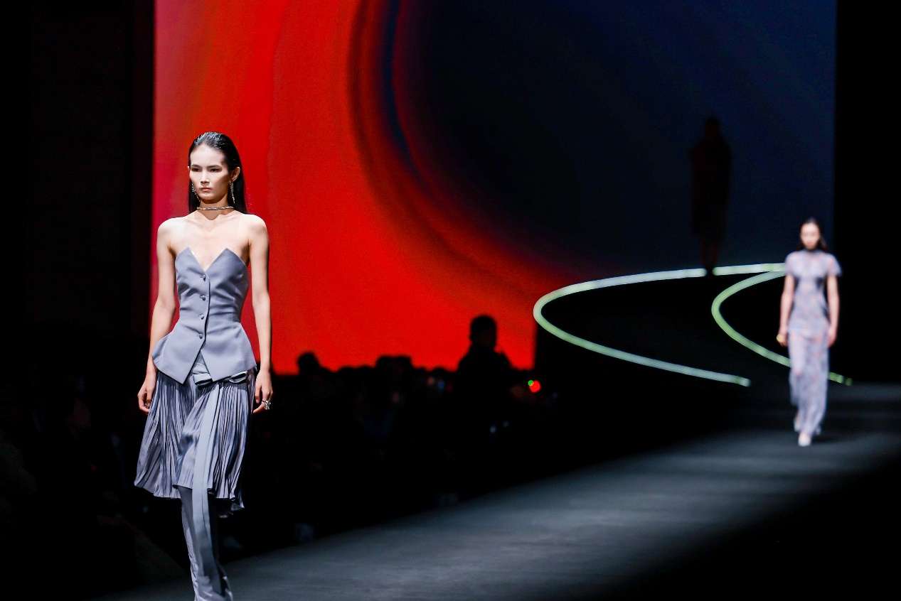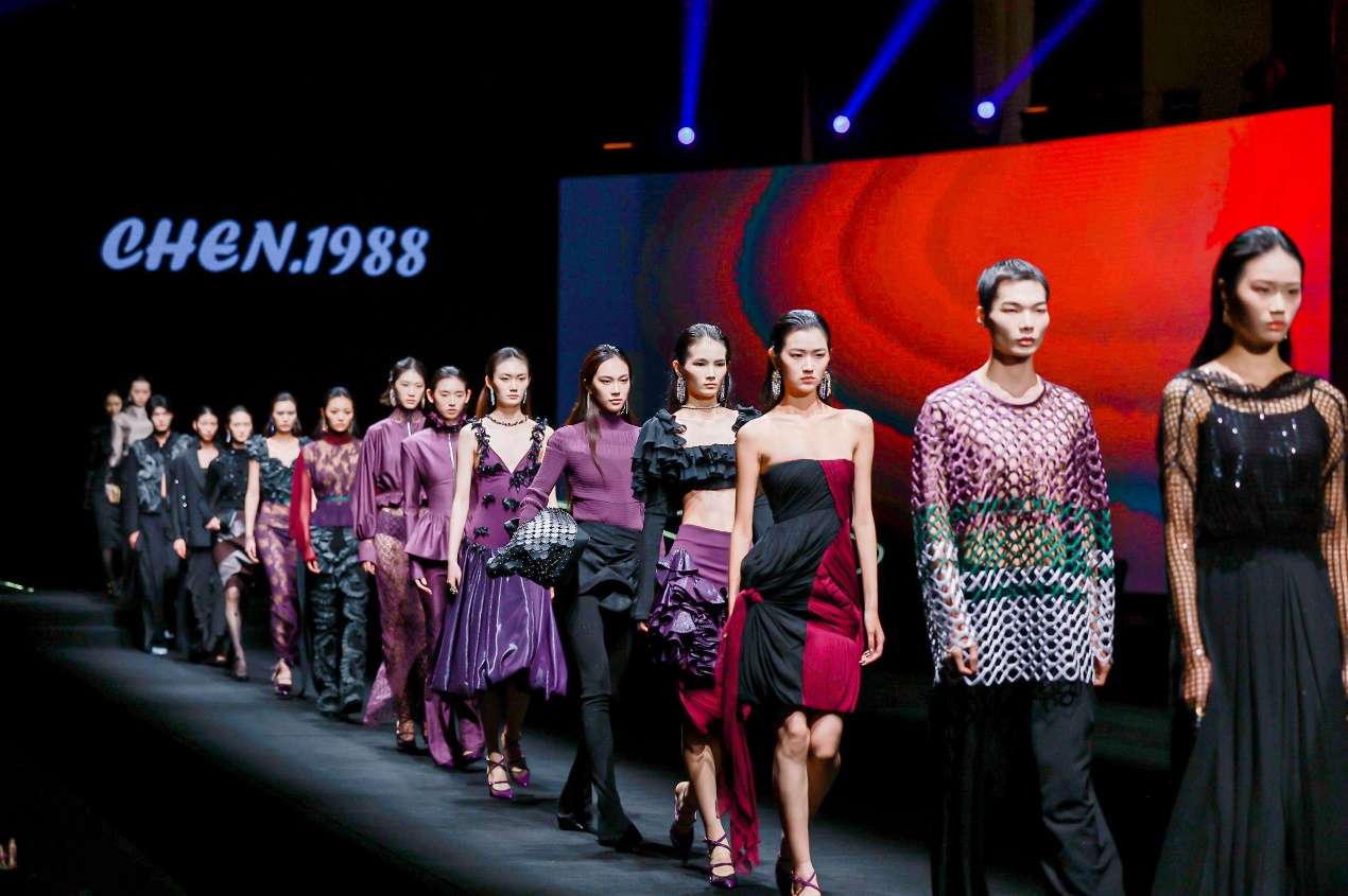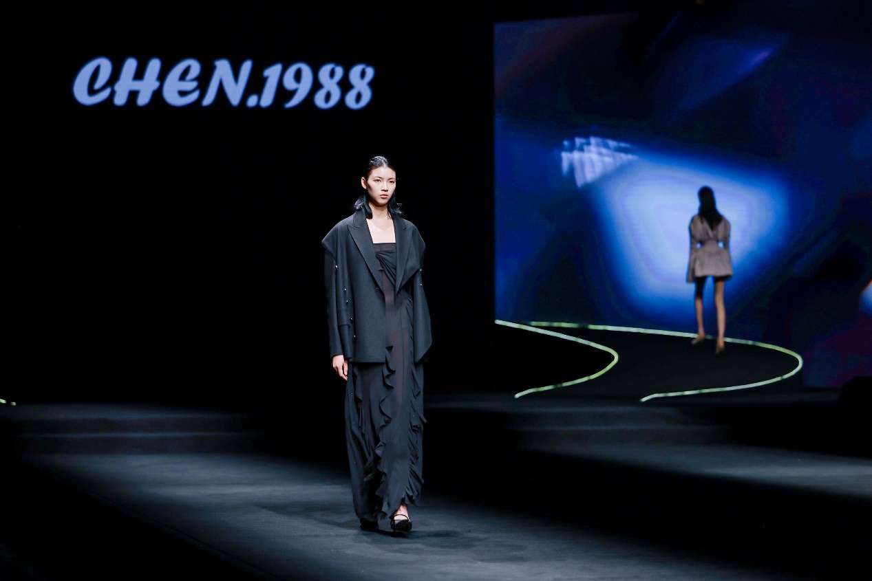 学校CHEN.1988产业学院成果发布秀,使开幕式的氛围达到了高潮,为现场观众带来了一场极具创意的时尚视觉盛宴。本场发布会以“刚柔对话”为主题,将建筑般的硬朗结构与流动的柔美线条巧妙融合。在刚与柔的对话中,重塑了当代时装剪裁的边界。