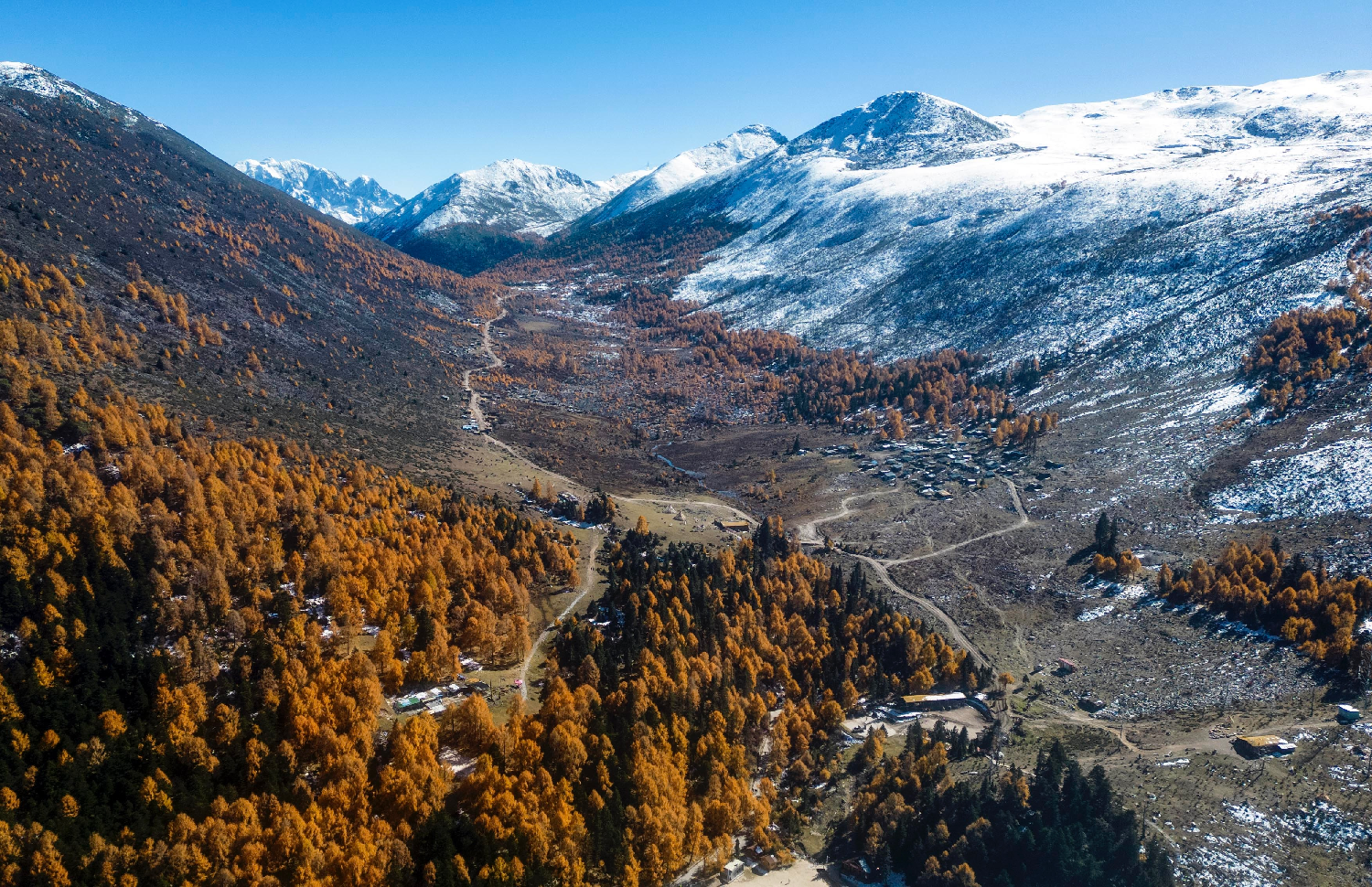 木格措,藏语意为“野人海”,是康定情歌的发源地。深秋的木格措,云雾在山谷间游走,湖面清澈如镜,倒映着皑皑雪峰与金黄林海。游客漫步栈道,听风声与水声交织。