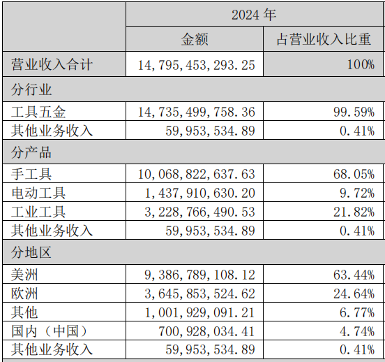 以過去的2024年為例,巨星科技營收147.95億元,其中歐美地區130.33億元,占到了總營收的近9成。
