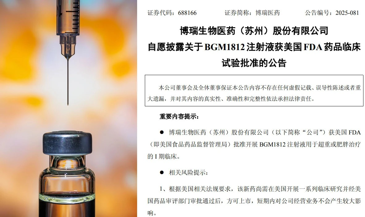 9月29日,袁建栋实控的博瑞医药披露,BGM1812注射液,获美国FDA批准,开展超重或肥胖治疗的I期临床。